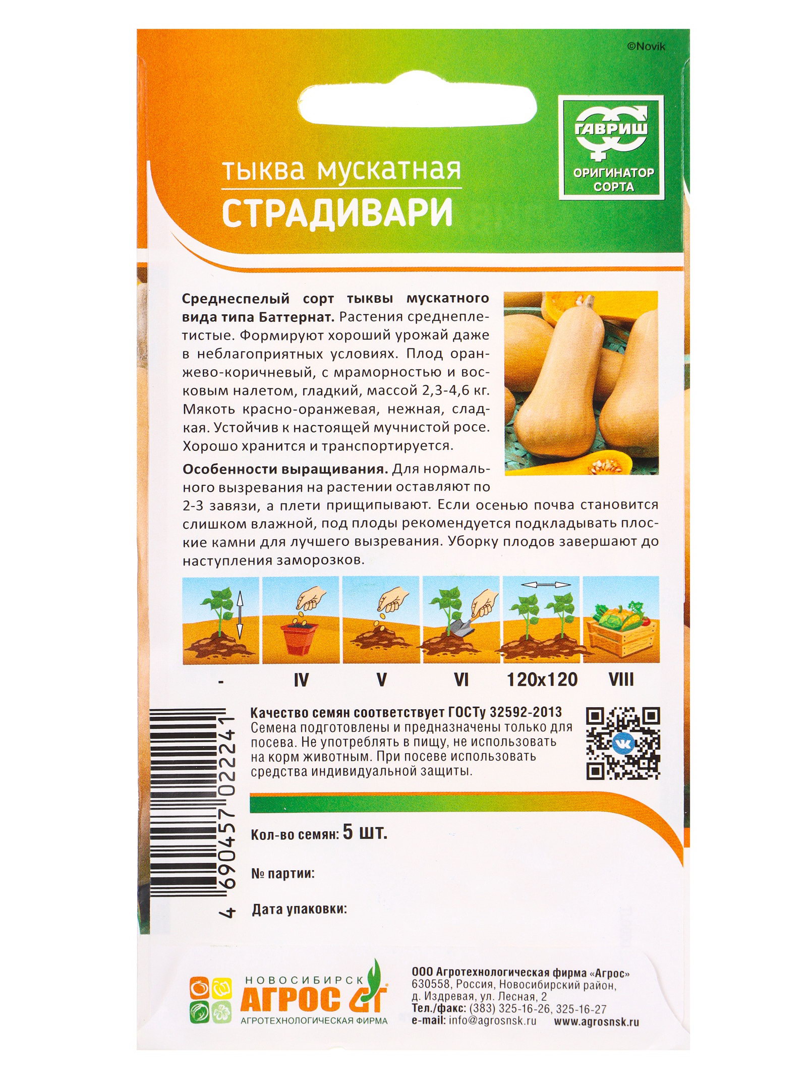 Семена Тыква "Страдивари" 5 шт, Агросс, Россия