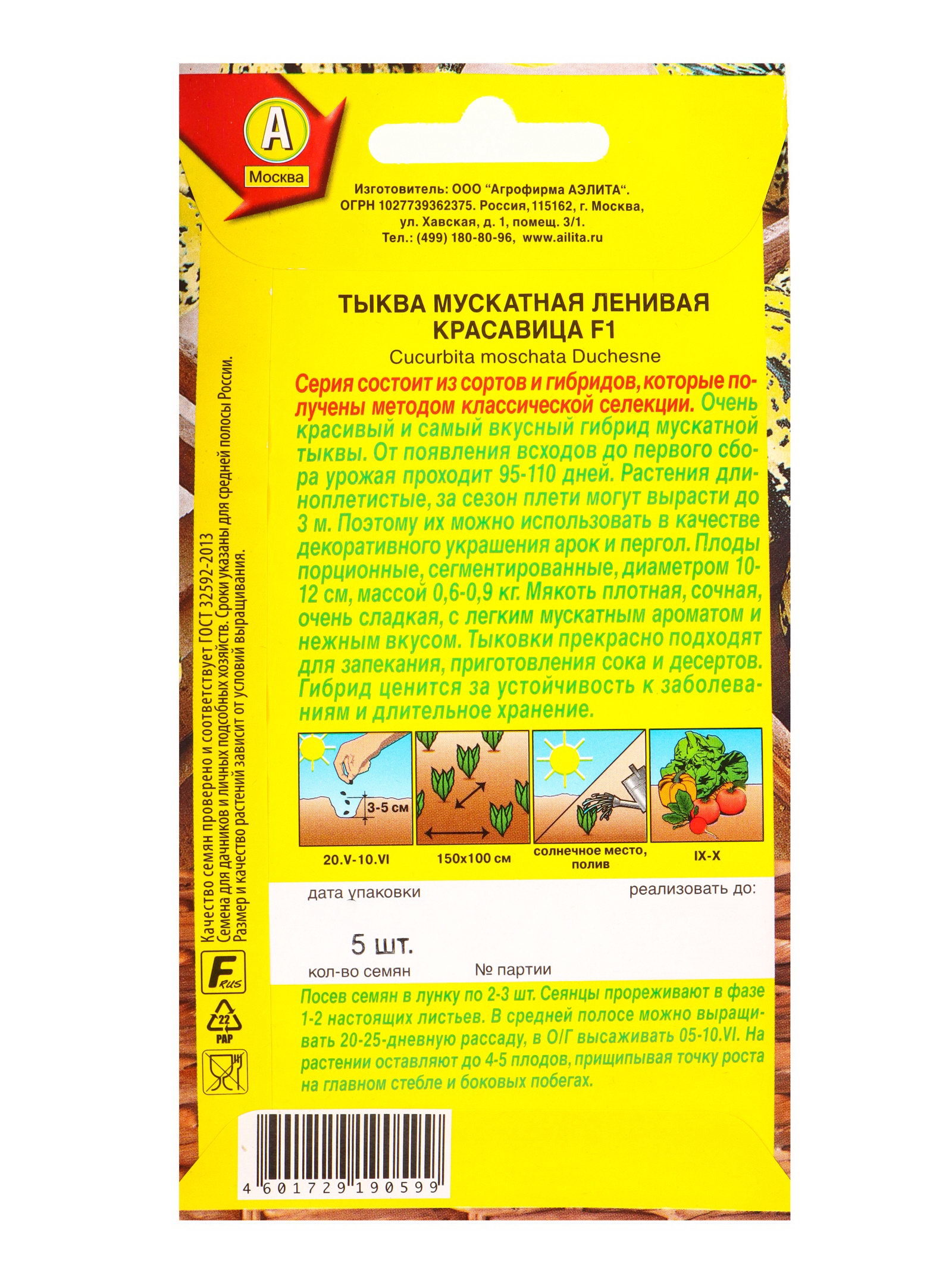 Семена Тыква мускатная Ленивая красавица F1 Профи-Аэлита, Ц/П,5 шт., Агрофирма АЭЛИТА, Россия