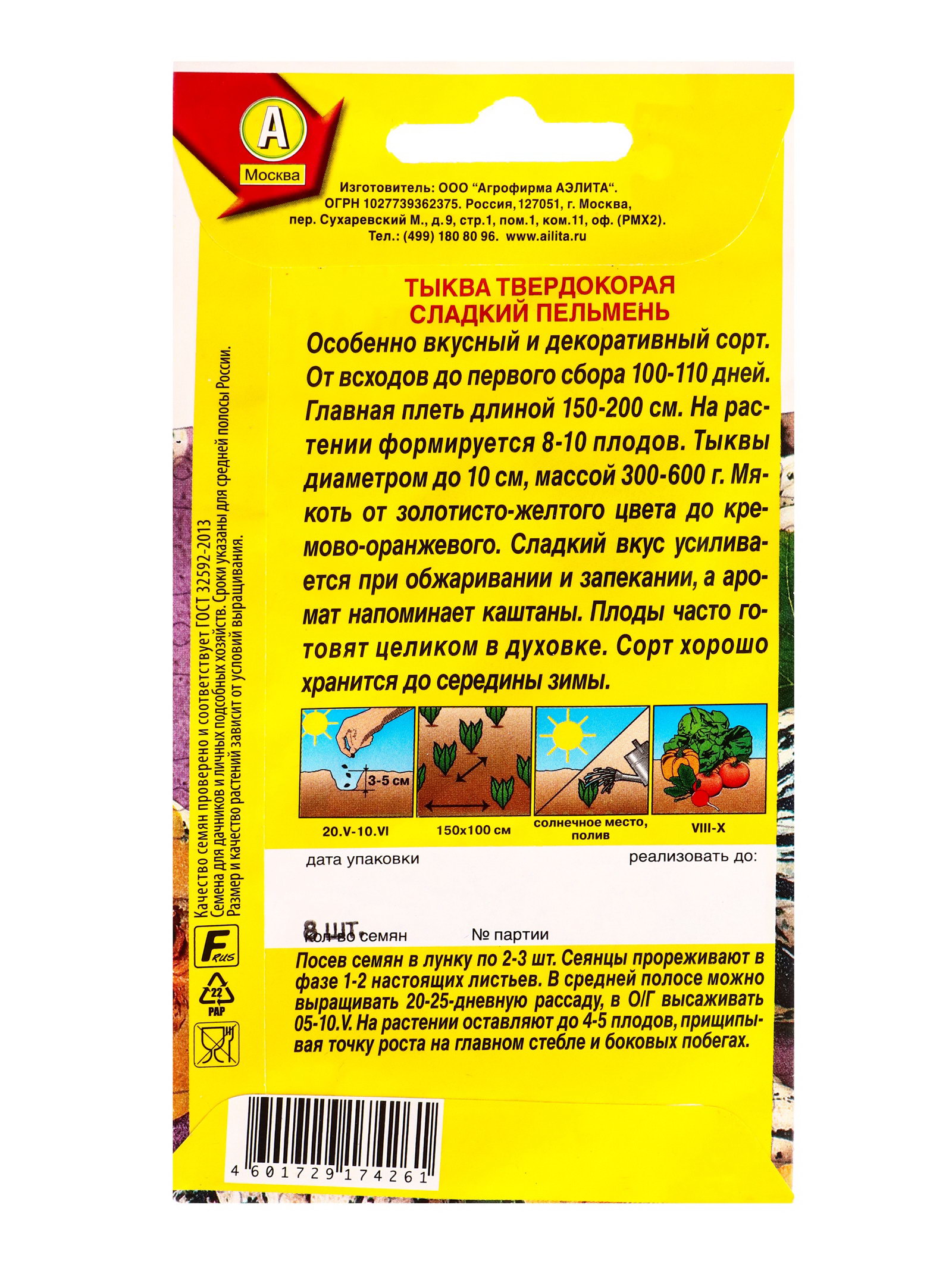 Семена Тыква твердокорая Сладкий пельмень Диковинные овощи, Ц/П,8 шт., Агрофирма АЭЛИТА, Россия