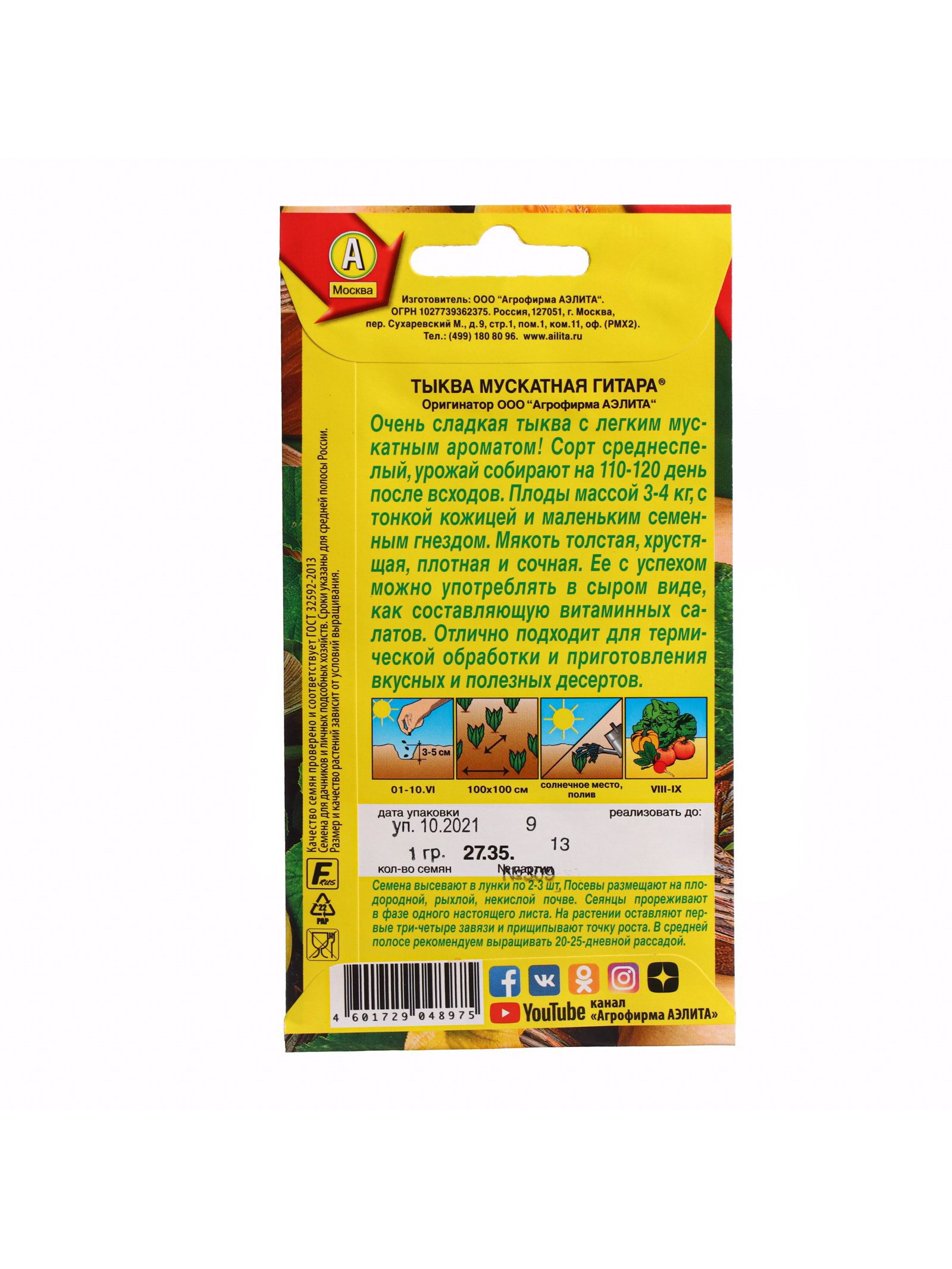 Набор семян Тыква мускатная "Гитара", 5 шт., 9x17x1 см., Мой выбор, Россия