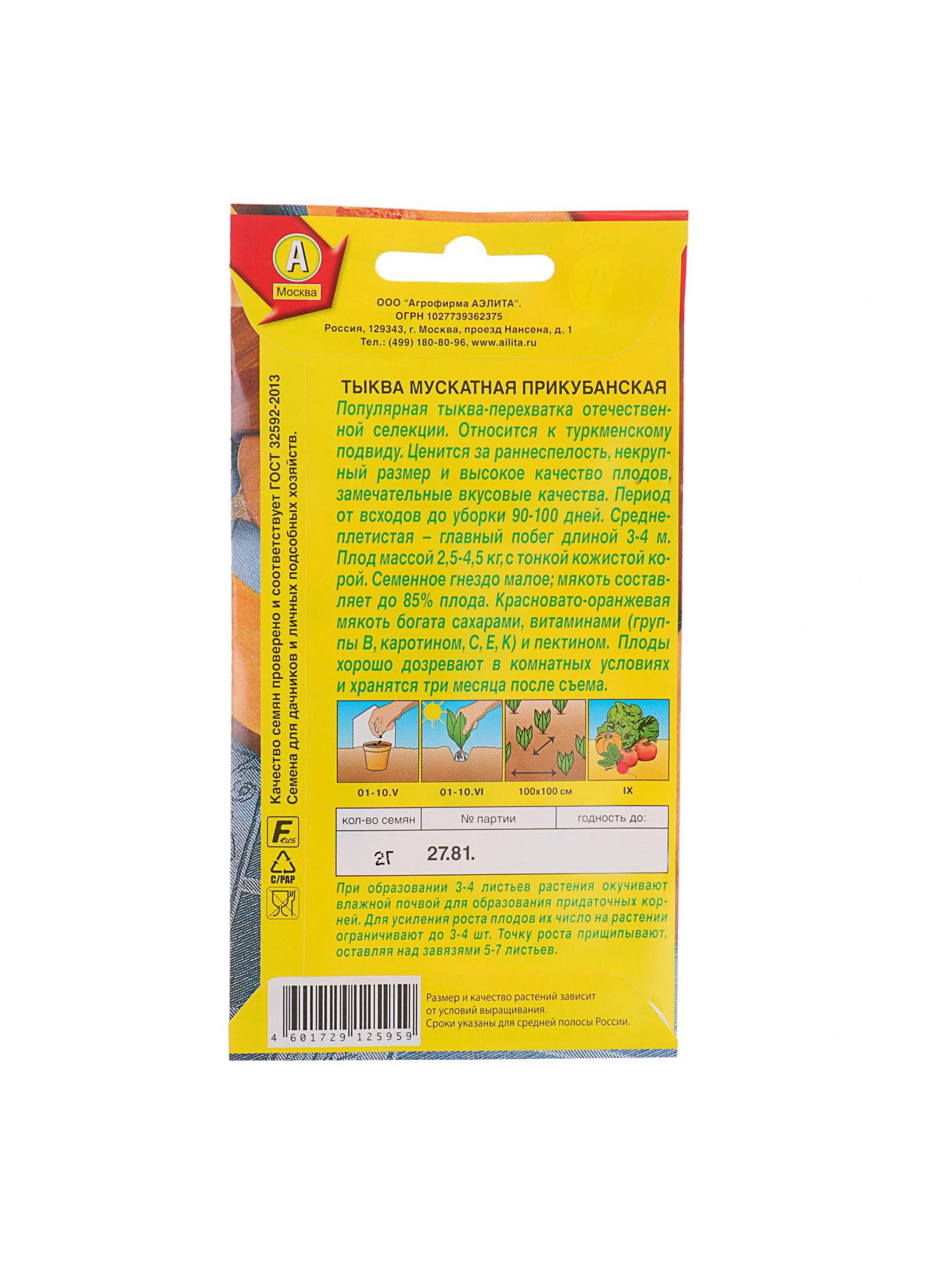 Набор семян Тыква мускатная "Прикубанская", 5 шт., 9x17x1 см., Мой выбор, Россия