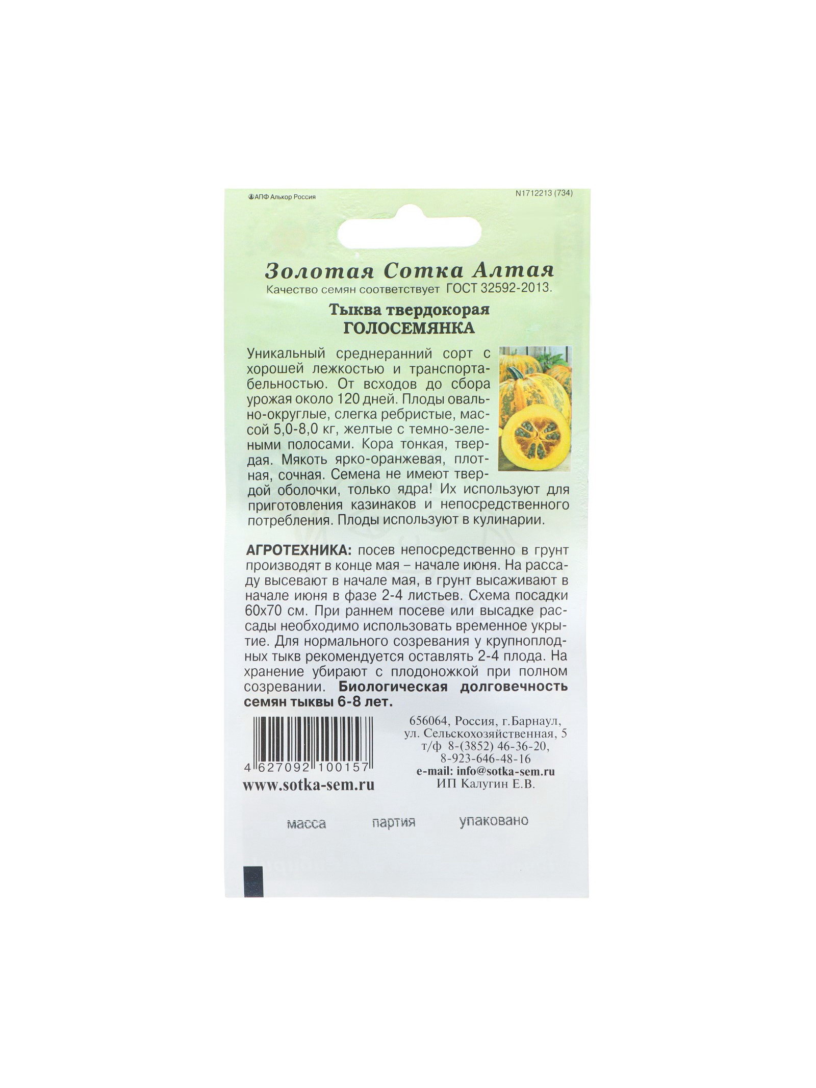 Набор семян Тыква "Голосемянка", среднеранняя, 5 шт., 9x17x1 см., Мой выбор, Россия