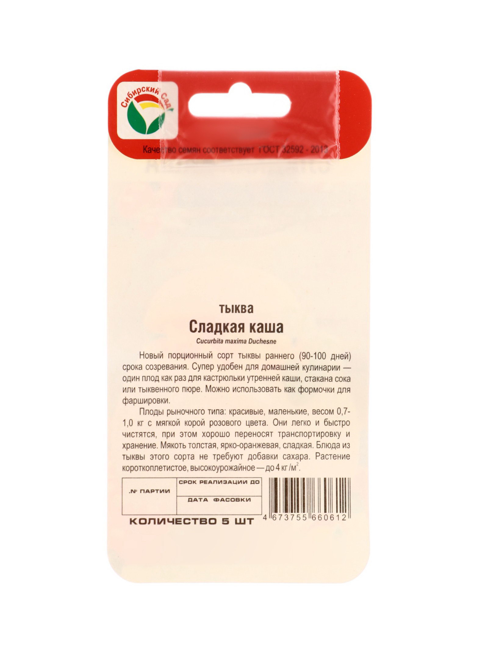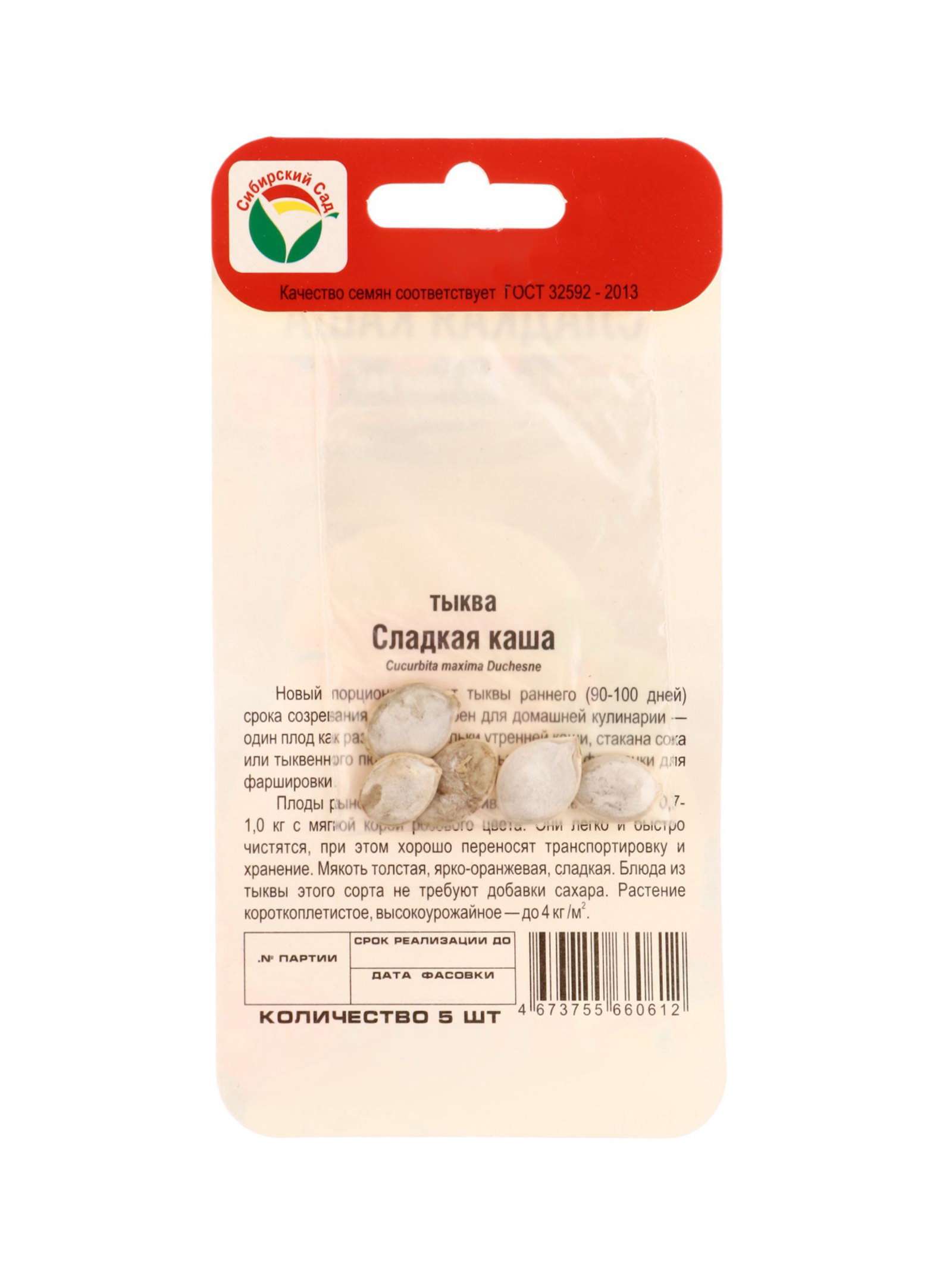 Семена Тыква Сладкая каша 5шт, Сибирский сад, Россия