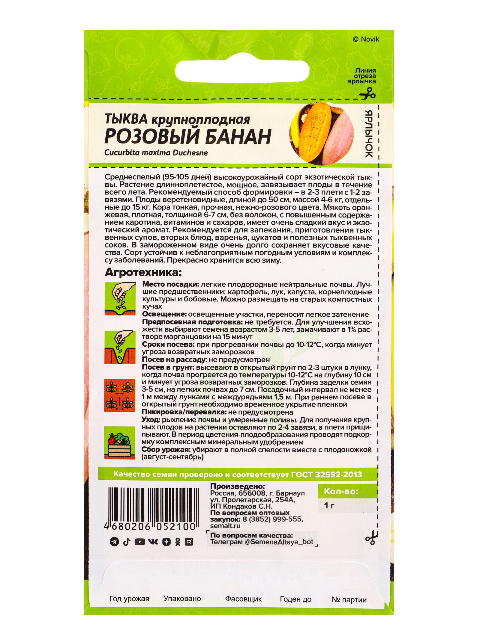 Тыква Розовый Банан/Сем Алт/цп 1 гр НОВИНКА!, Семена Алтая, Россия