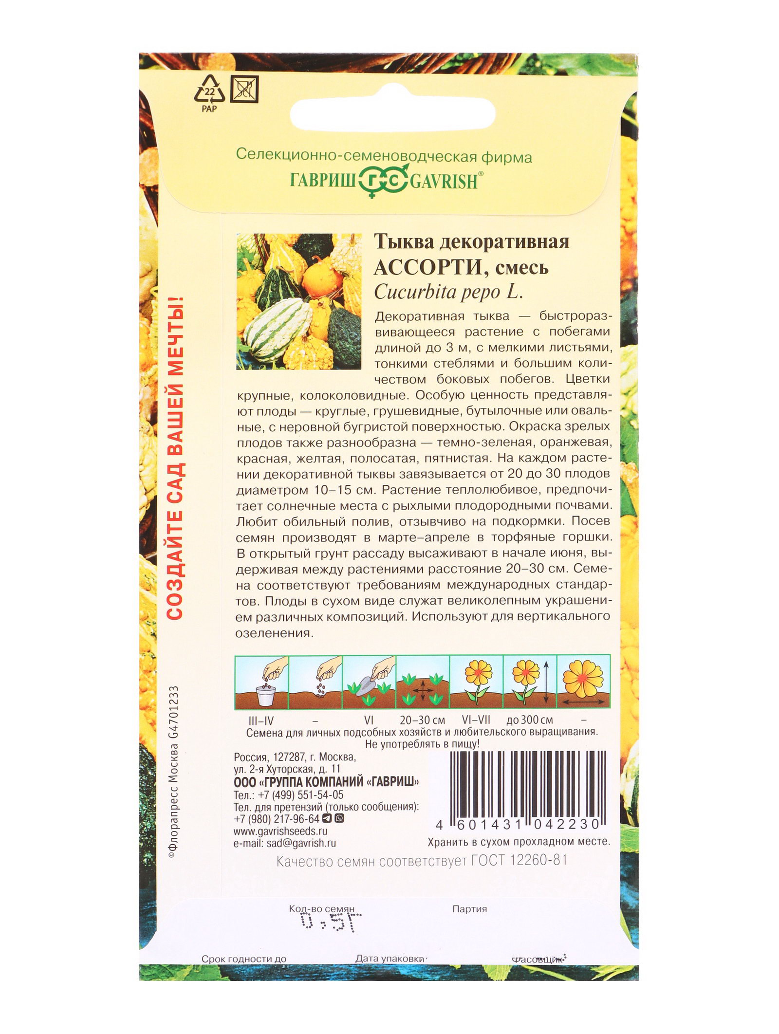 Семена цветов Тыква декоративная Ассорти 0.5 г DH, Гавриш, Россия