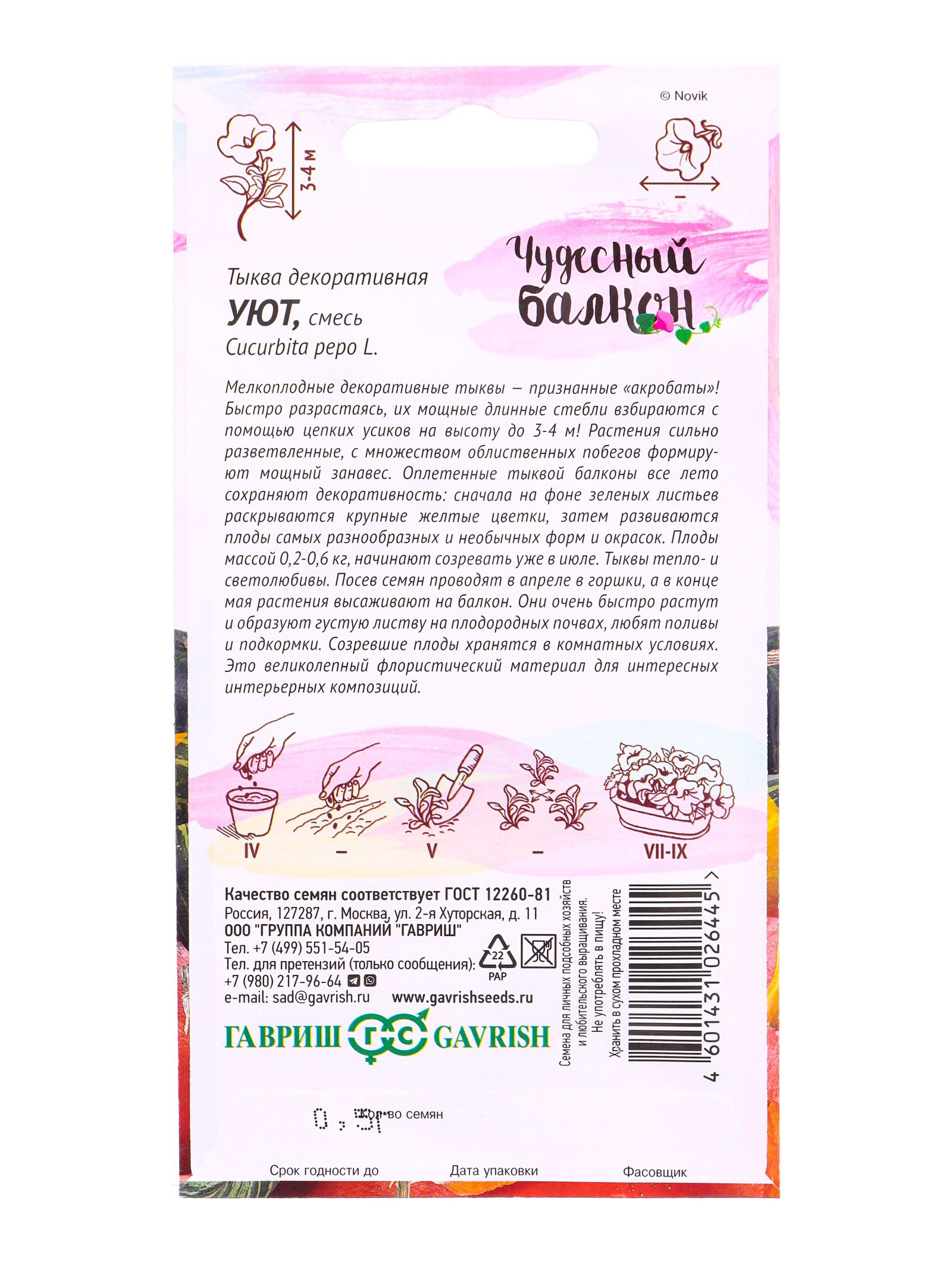 Семена цветов Тыква декоративная Уют, смесь 0.5 г серия Чудесный балкон, Гавриш, Россия