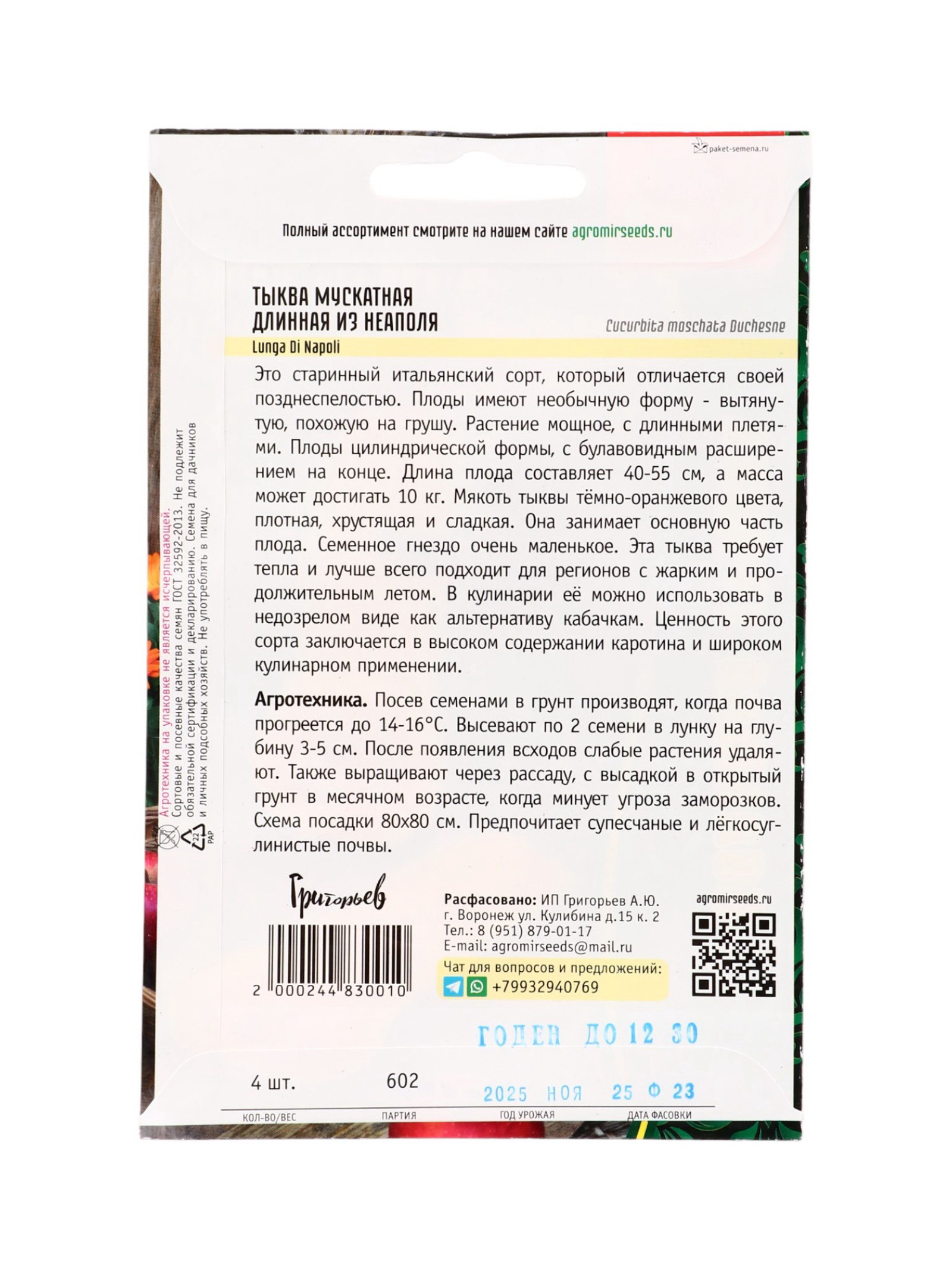 Семена Тыква Длинная из Неаполя мускатная, Григорьев, Россия