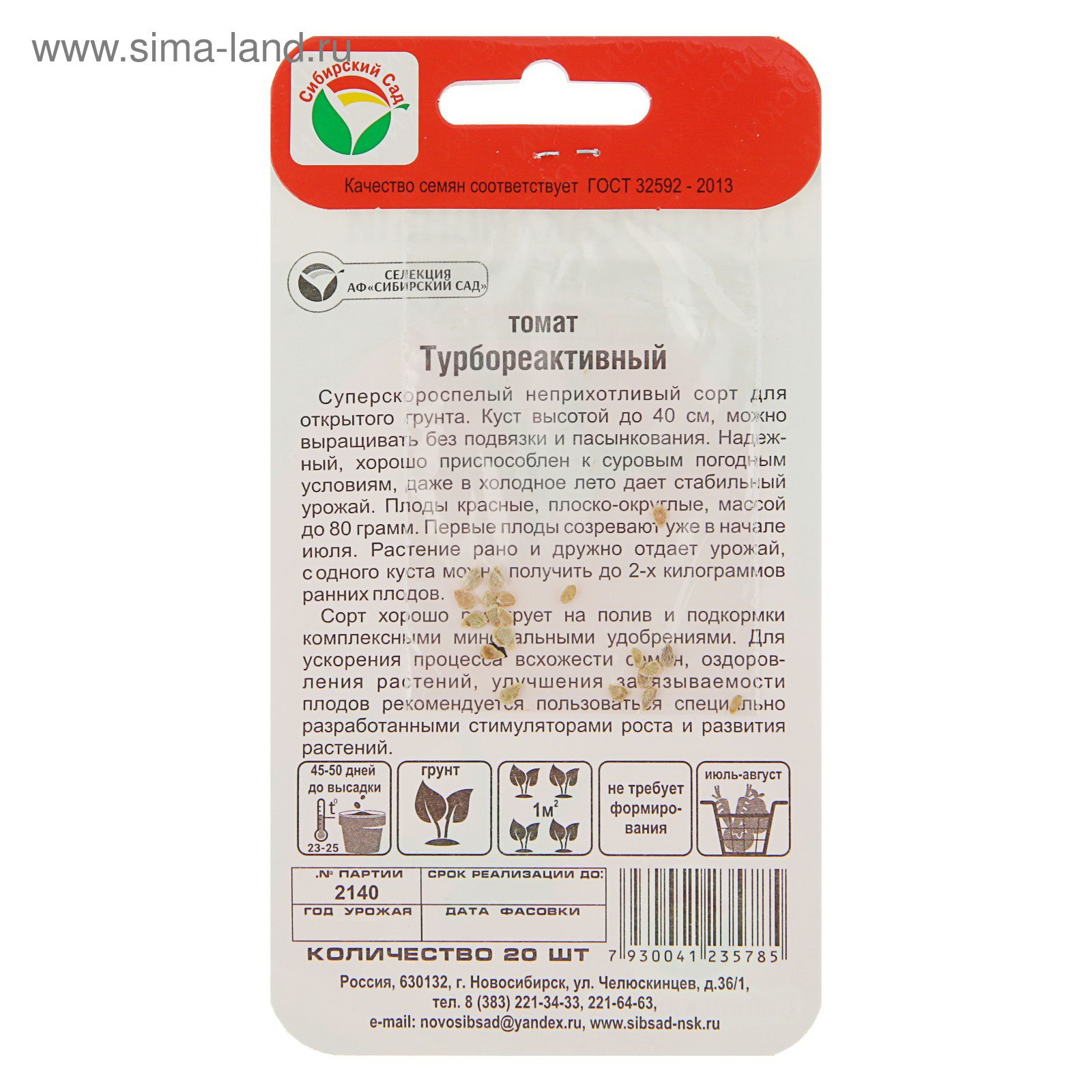 Семена Томат "Турбореактивный", суперскороспелый, 20 шт, Сибирский сад, Россия