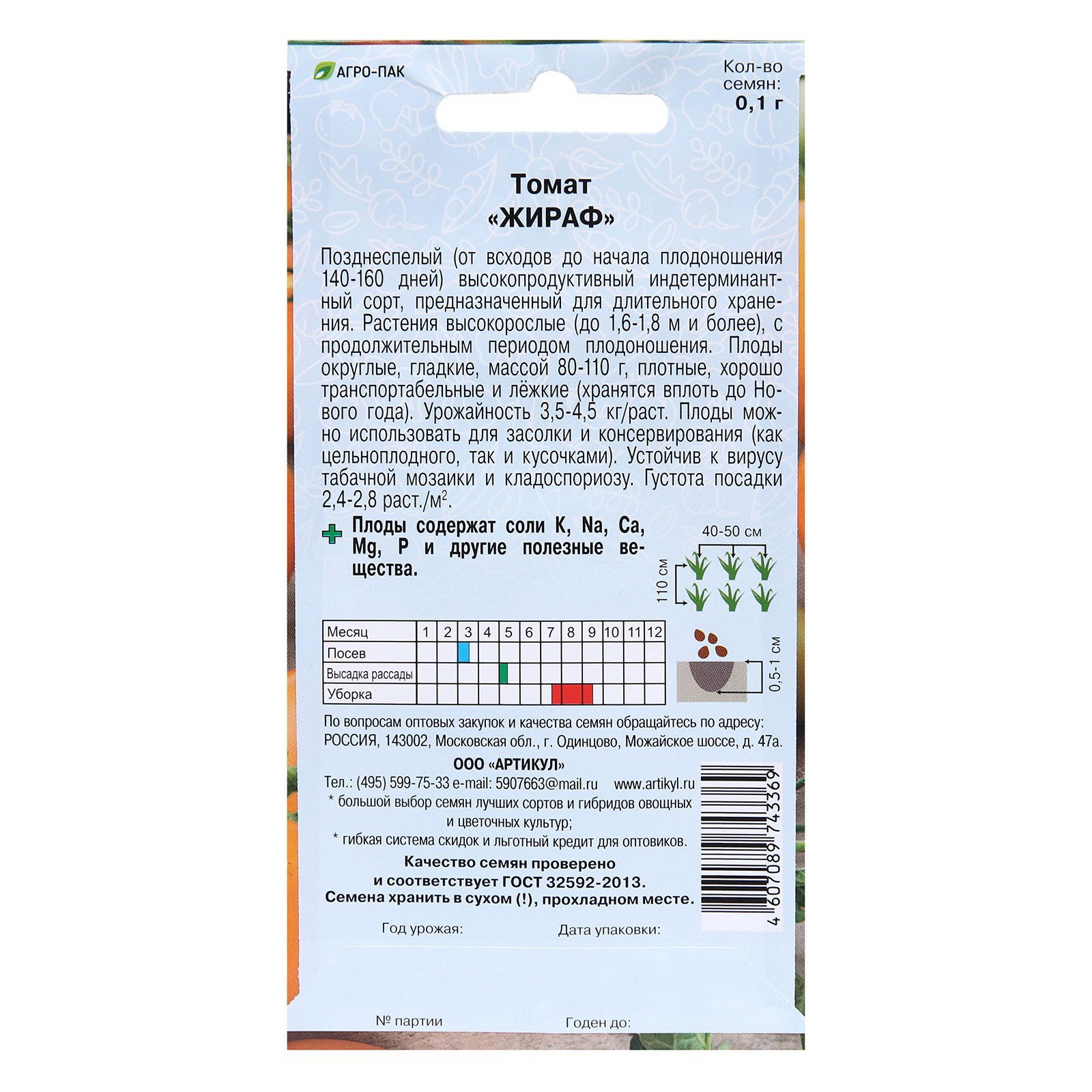 Семена Томат "Жираф" позднеспелый, 0.1 гр, 0.1x8x15 см., Артикул, Россия