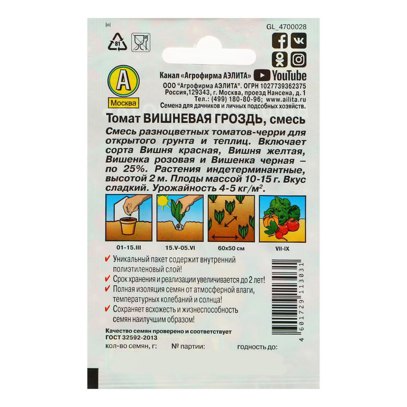 Семена Томат "Вишневая гроздь", смесь, индетерминантный,высокорослый, 0.1 г, Агрофирма АЭЛИТА, Китай