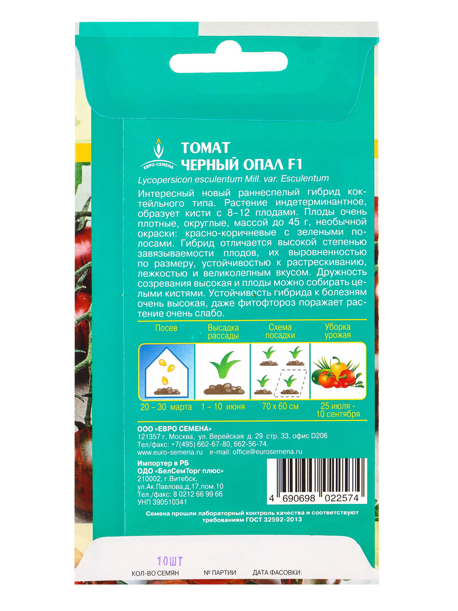 Семена Томат "Черный опал", F1, 10 шт., "Евро - семена", Евро-семена, Россия