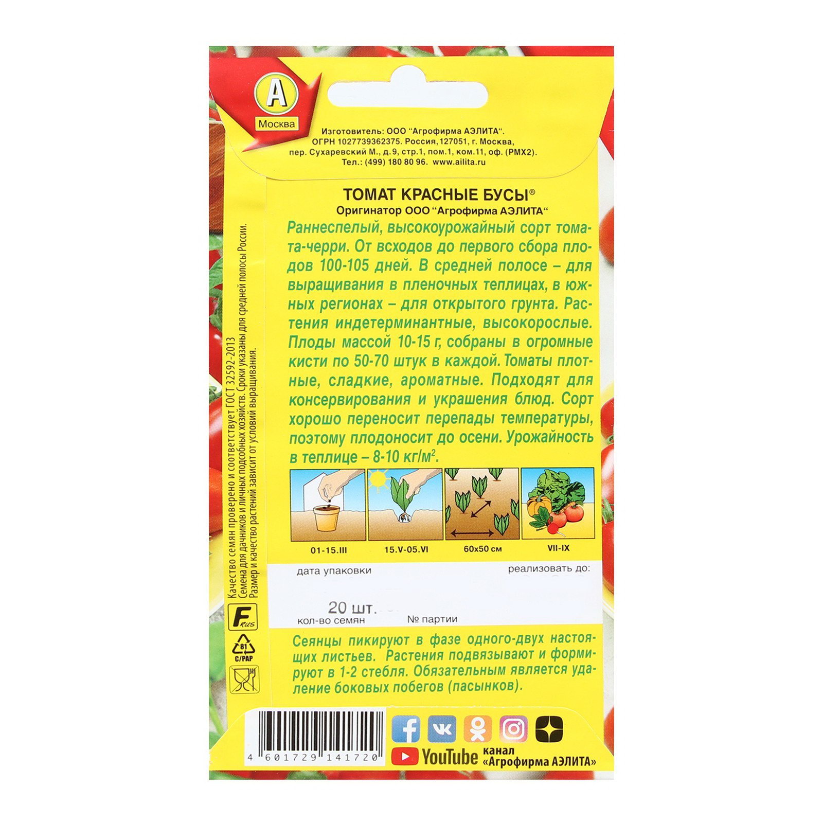 Семена Томат "Красные бусы", 20 шт, Агрофирма АЭЛИТА, Россия