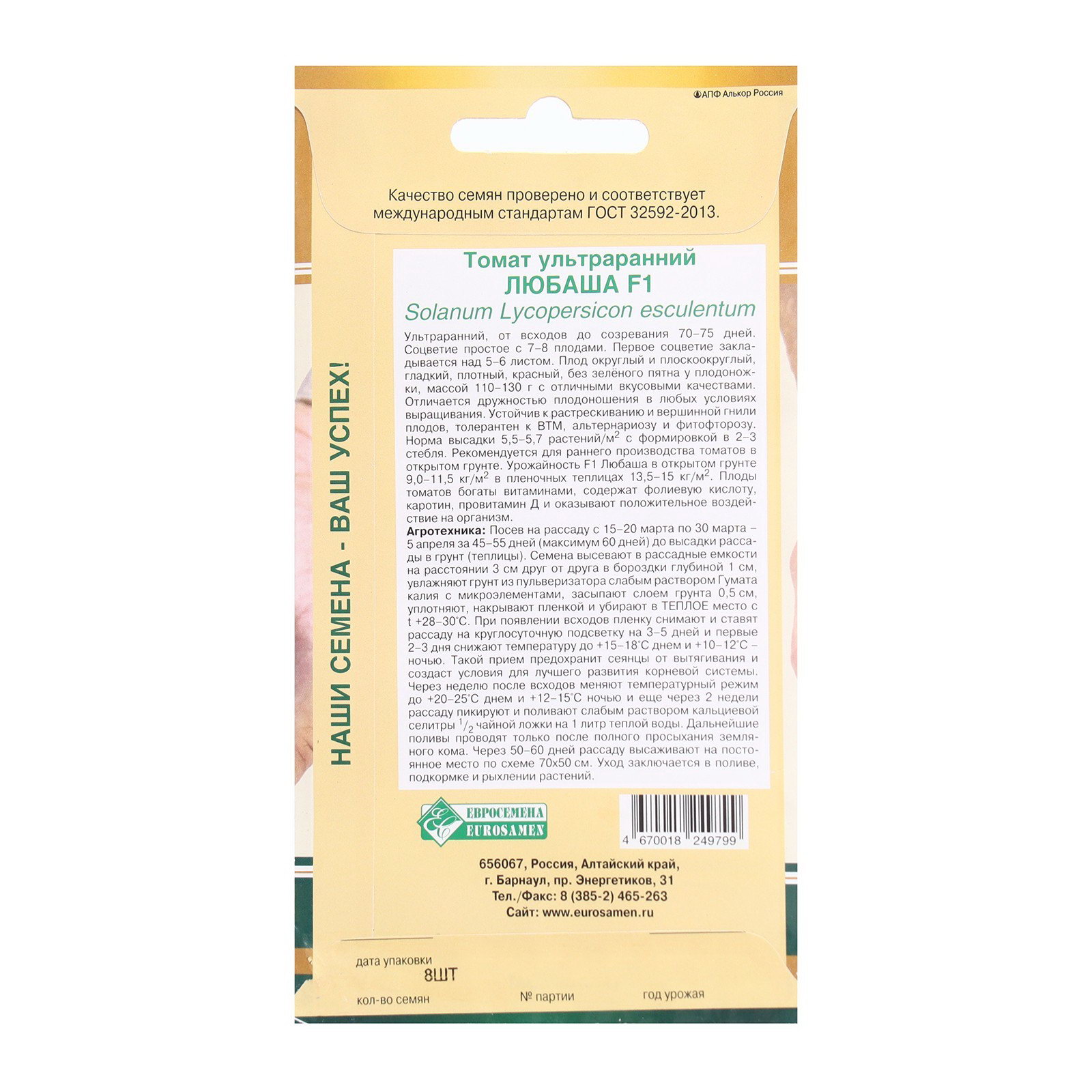 Семена томат ультраранний "ЛЮБАША F1", 8 шт., Евросемена, Россия