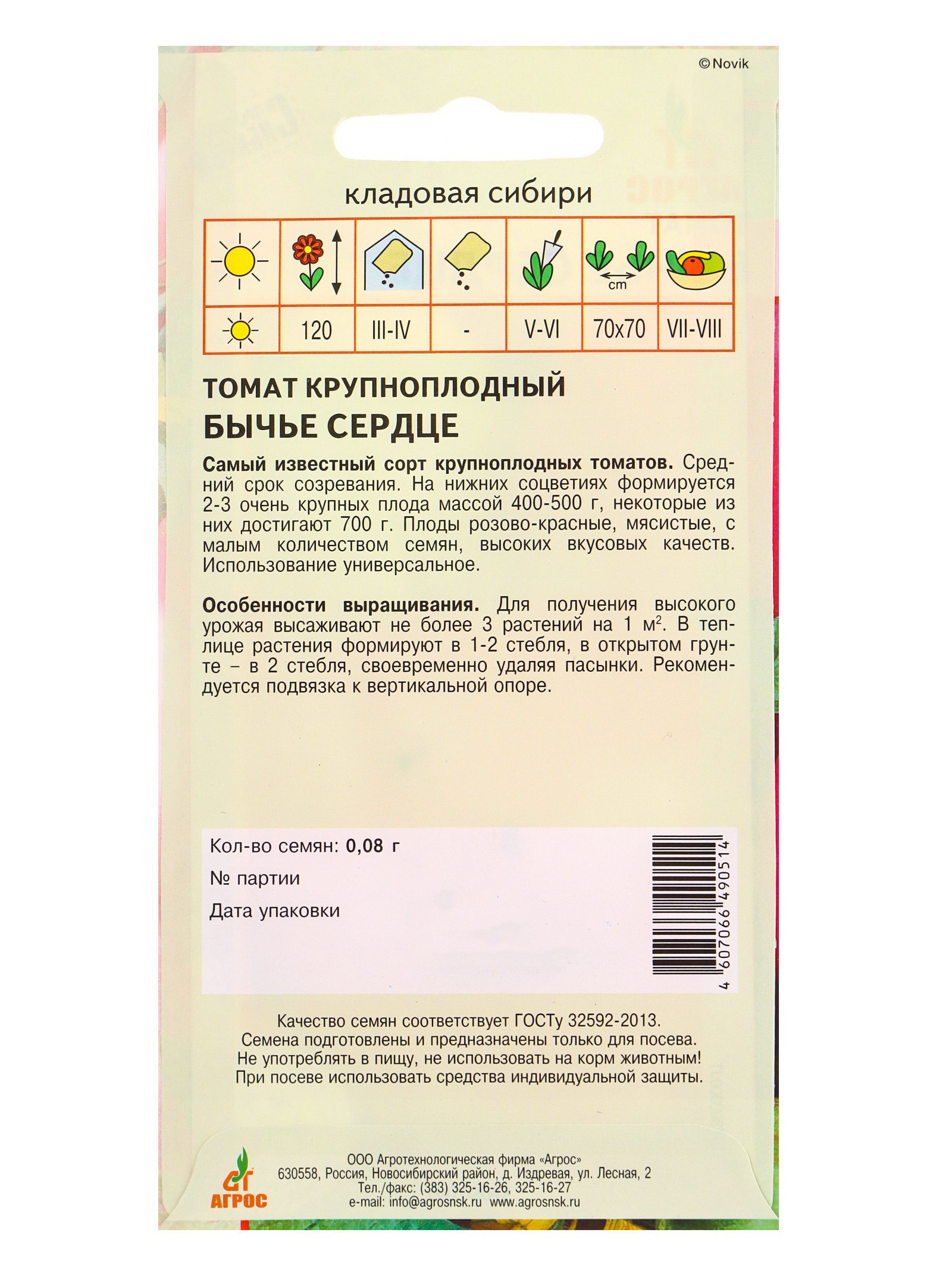 Семена Томат "Бычье сердце", 0.08 г, Агросс, Россия