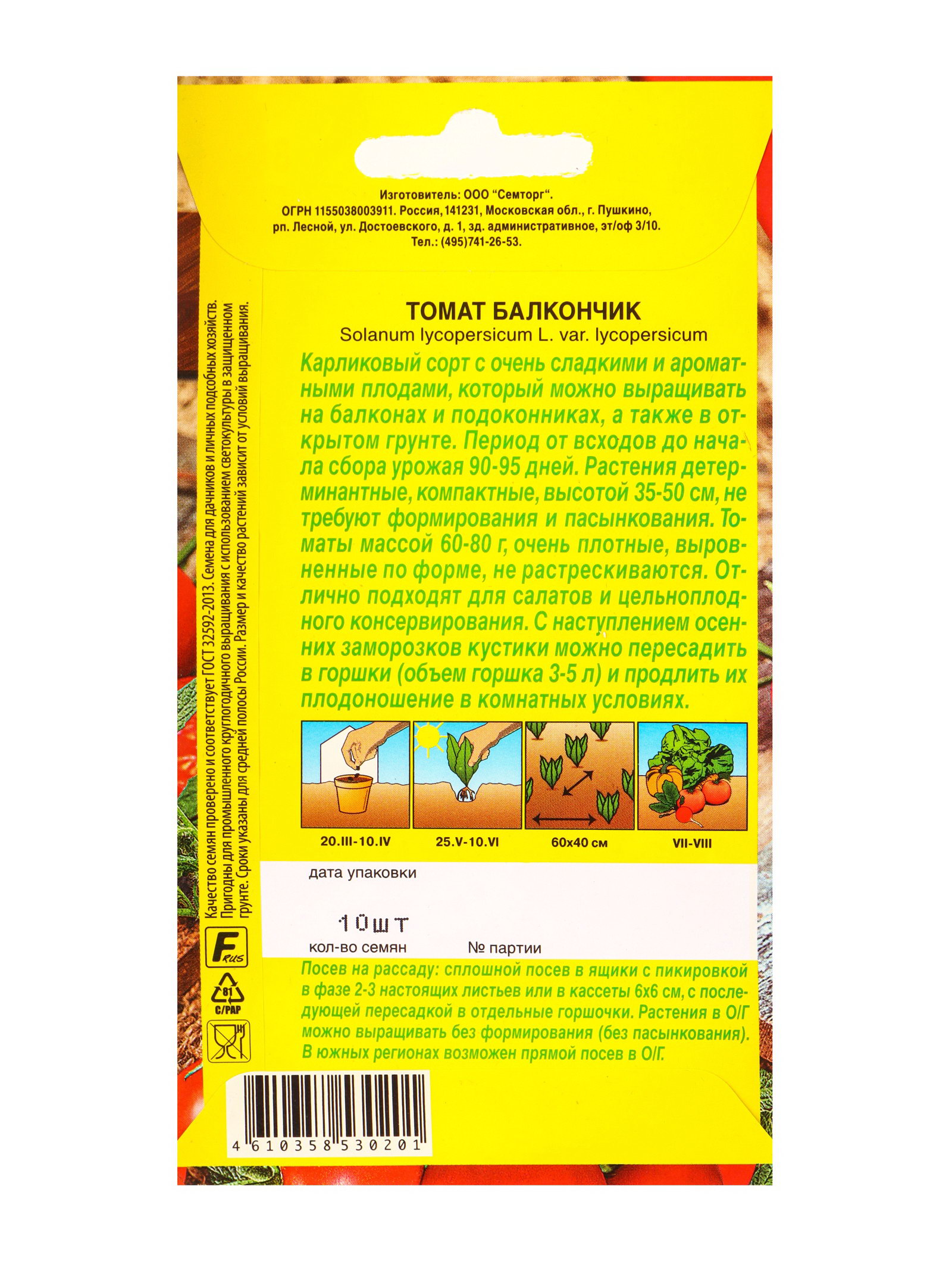 Семена Томат Балкончик Семторг, Ц/П СТ,10 шт., Агрофирма АЭЛИТА, Россия