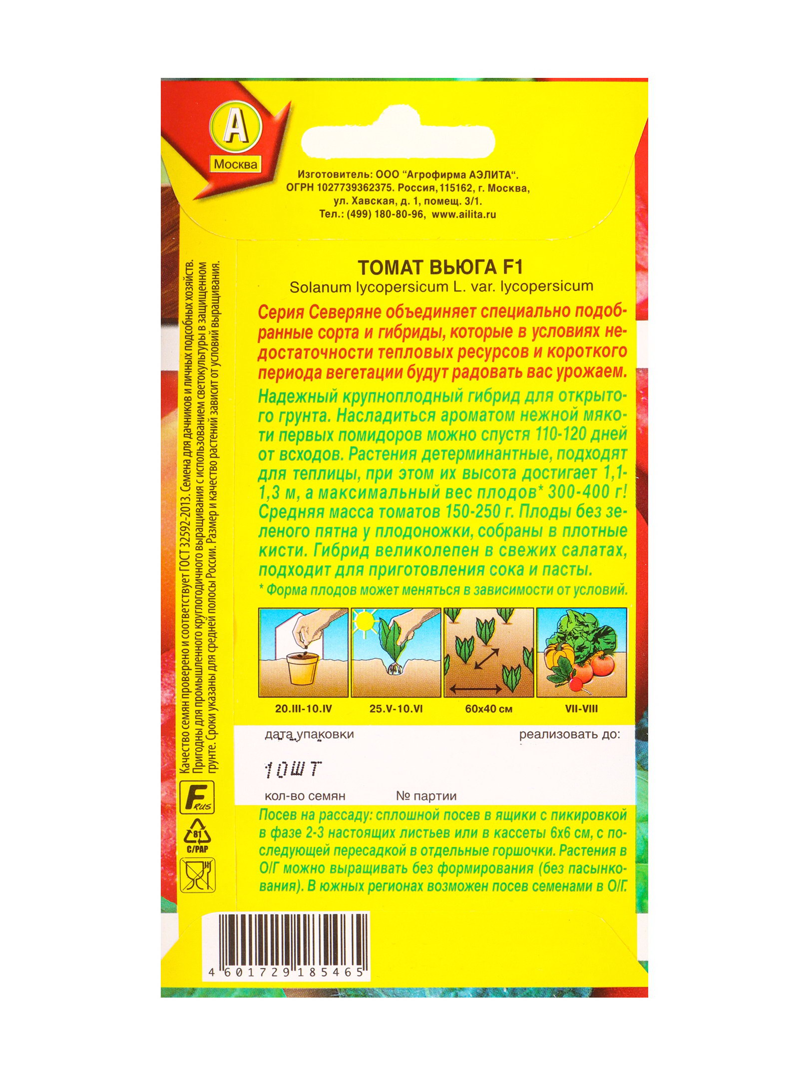 Семена Томат Вьюга F1 Северяне, Ц/П,10 шт., Агрофирма АЭЛИТА, Россия