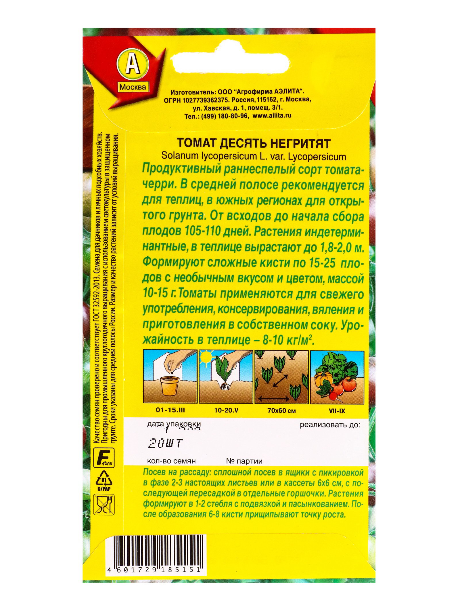 Семена Томат Десять негритят, Ц/П,20 шт., Агрофирма АЭЛИТА, Россия