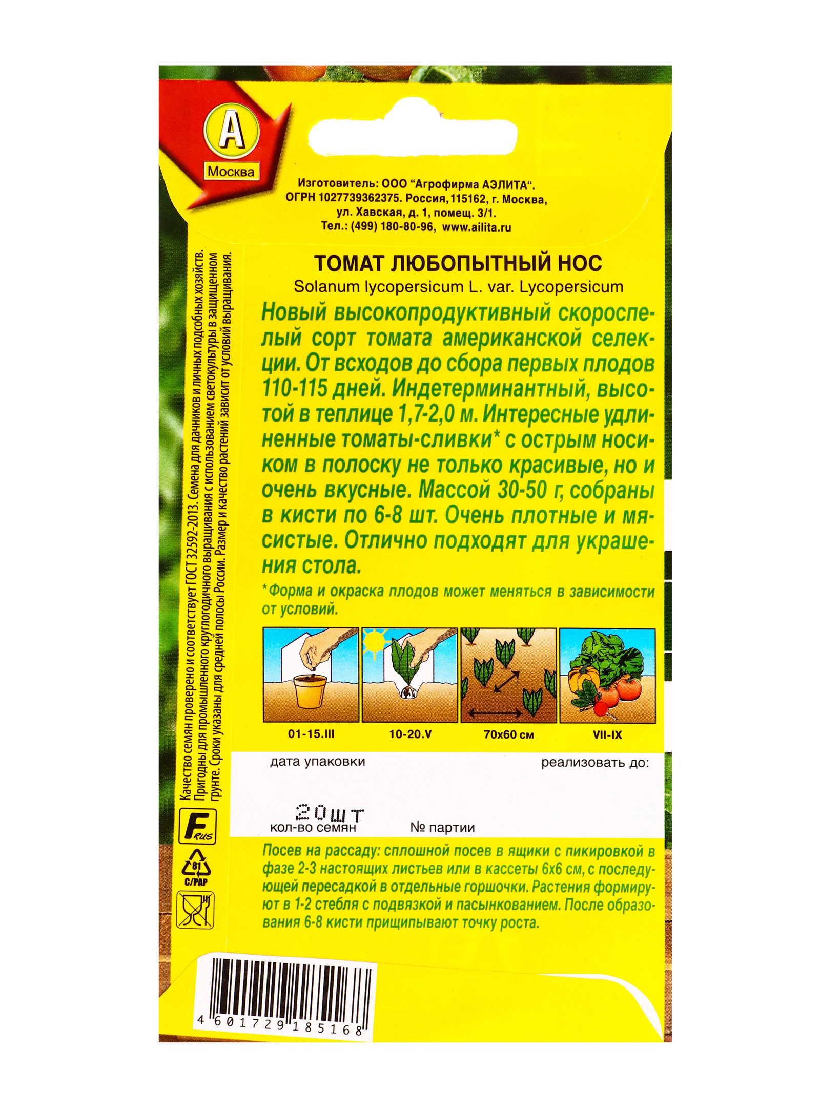 Семена Томат Любопытный нос Нарый любимец, Ц/П,20 шт., Агрофирма АЭЛИТА, Россия