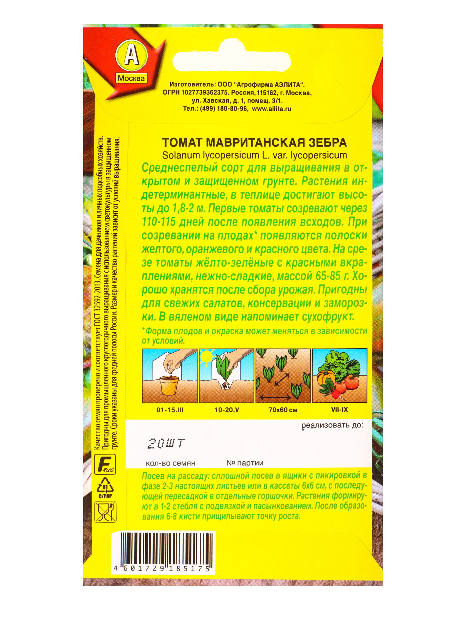 Семена Томат Мавританская зебра Ср, Ц/П,20 шт., Агрофирма АЭЛИТА, Россия
