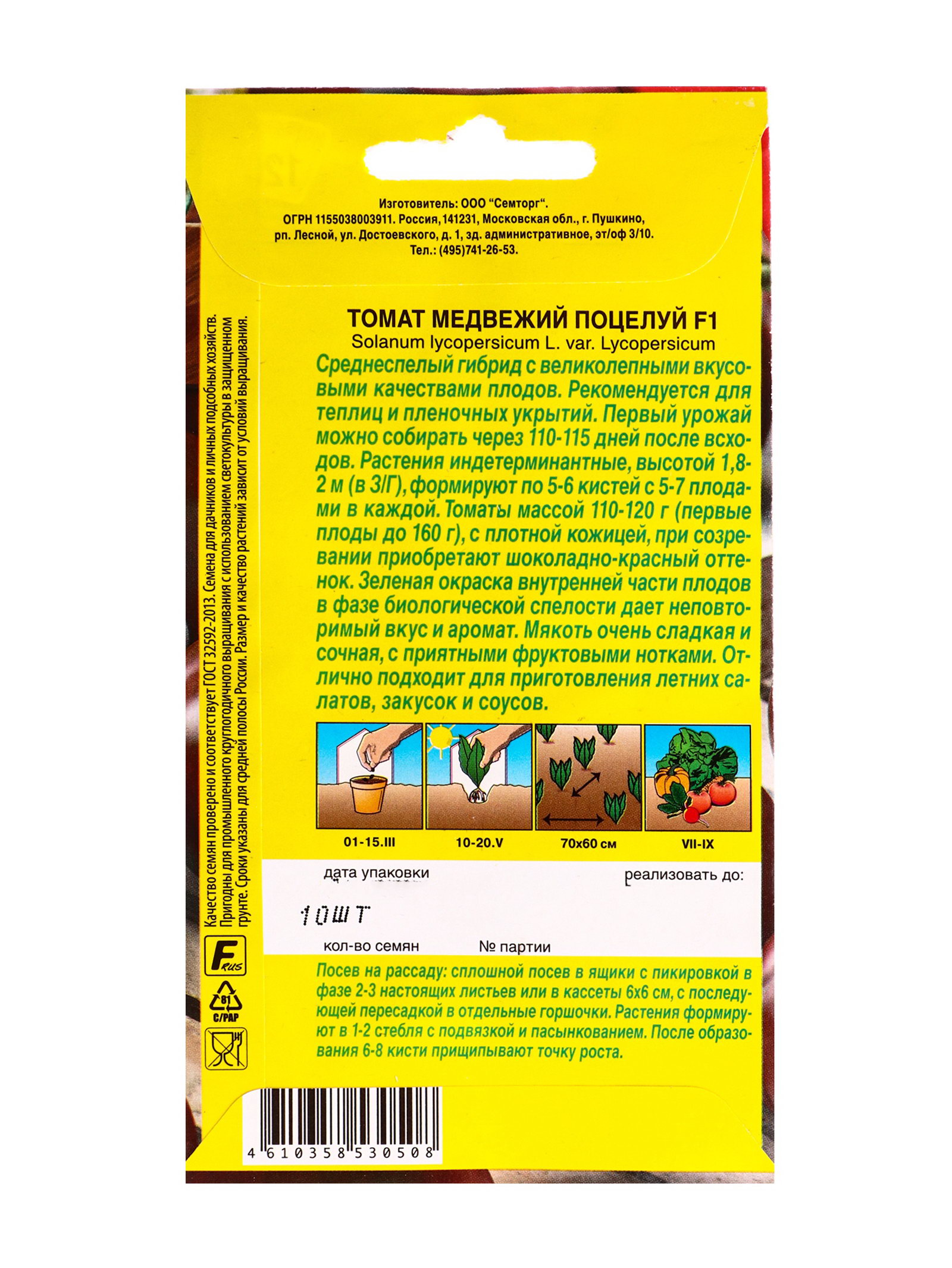 Семена Томат Медвежий поцелуй F1 Ср Семторг, Ц/П СТ,10 шт., Агрофирма АЭЛИТА, Россия