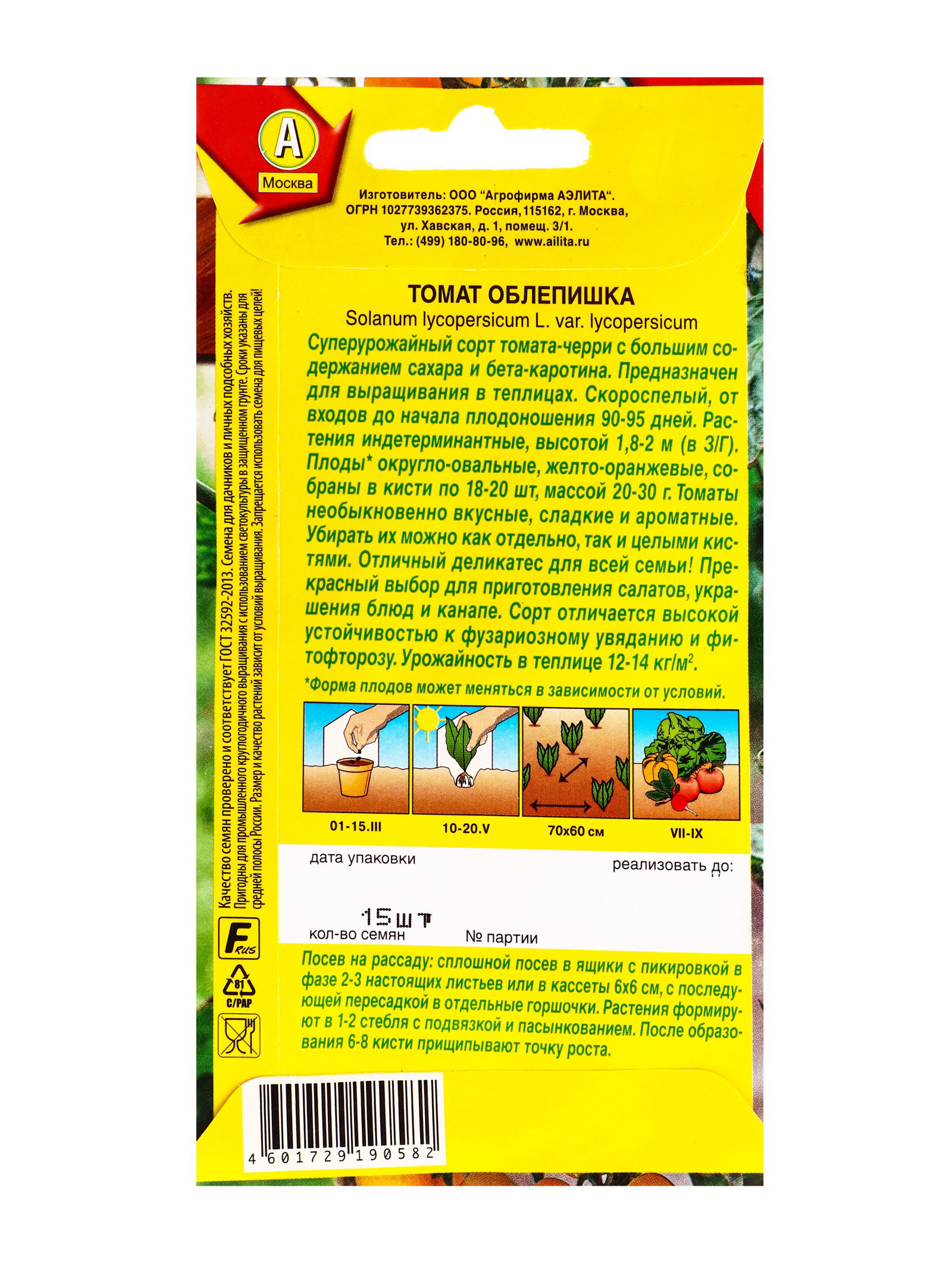 Семена Томат Облепишка Р, Ц/П,15 шт., Агрофирма АЭЛИТА, Россия