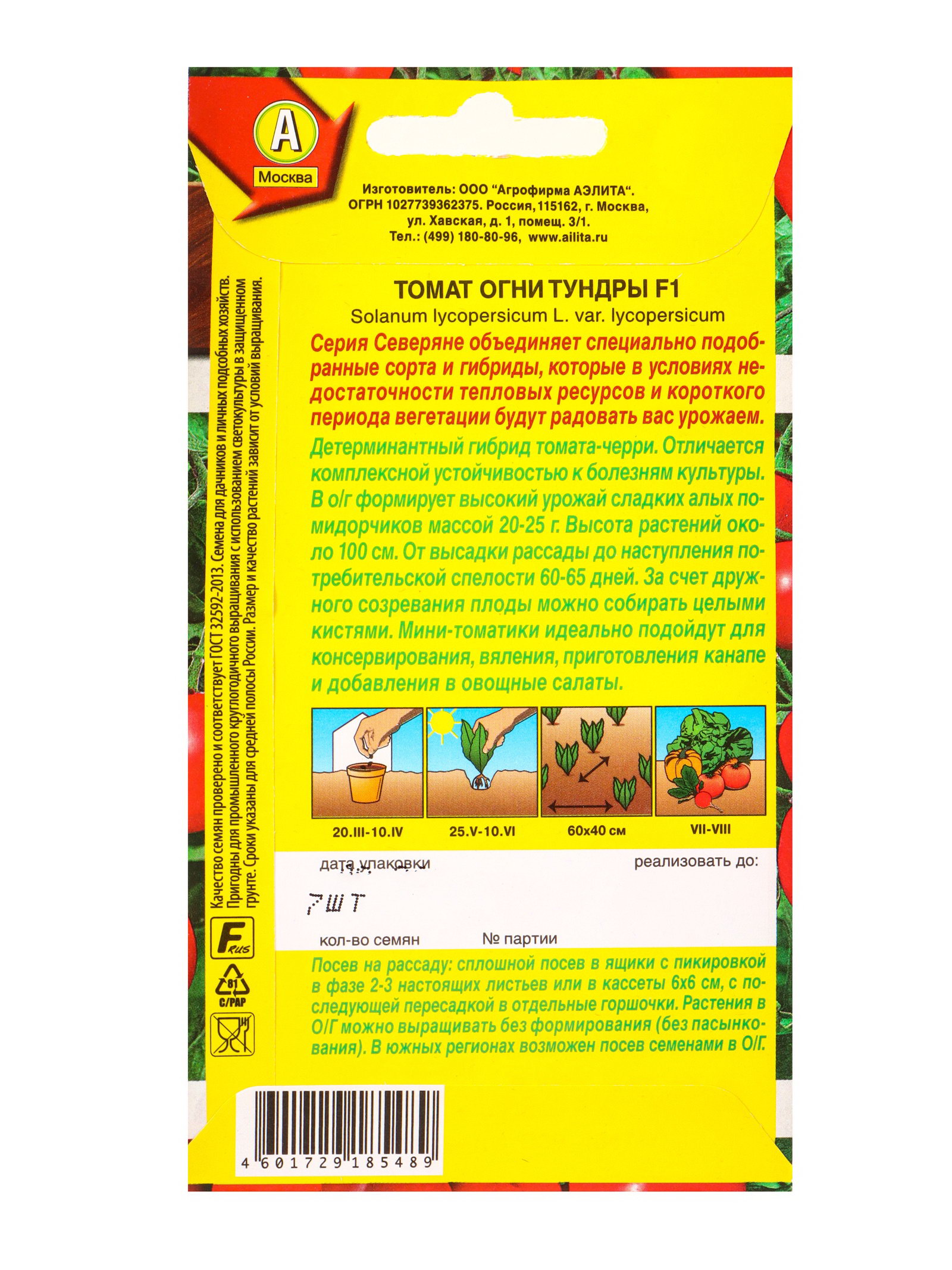 Семена Томат Огни тундры F1 Северяне, Ц/П,7 шт., Агрофирма АЭЛИТА, Россия