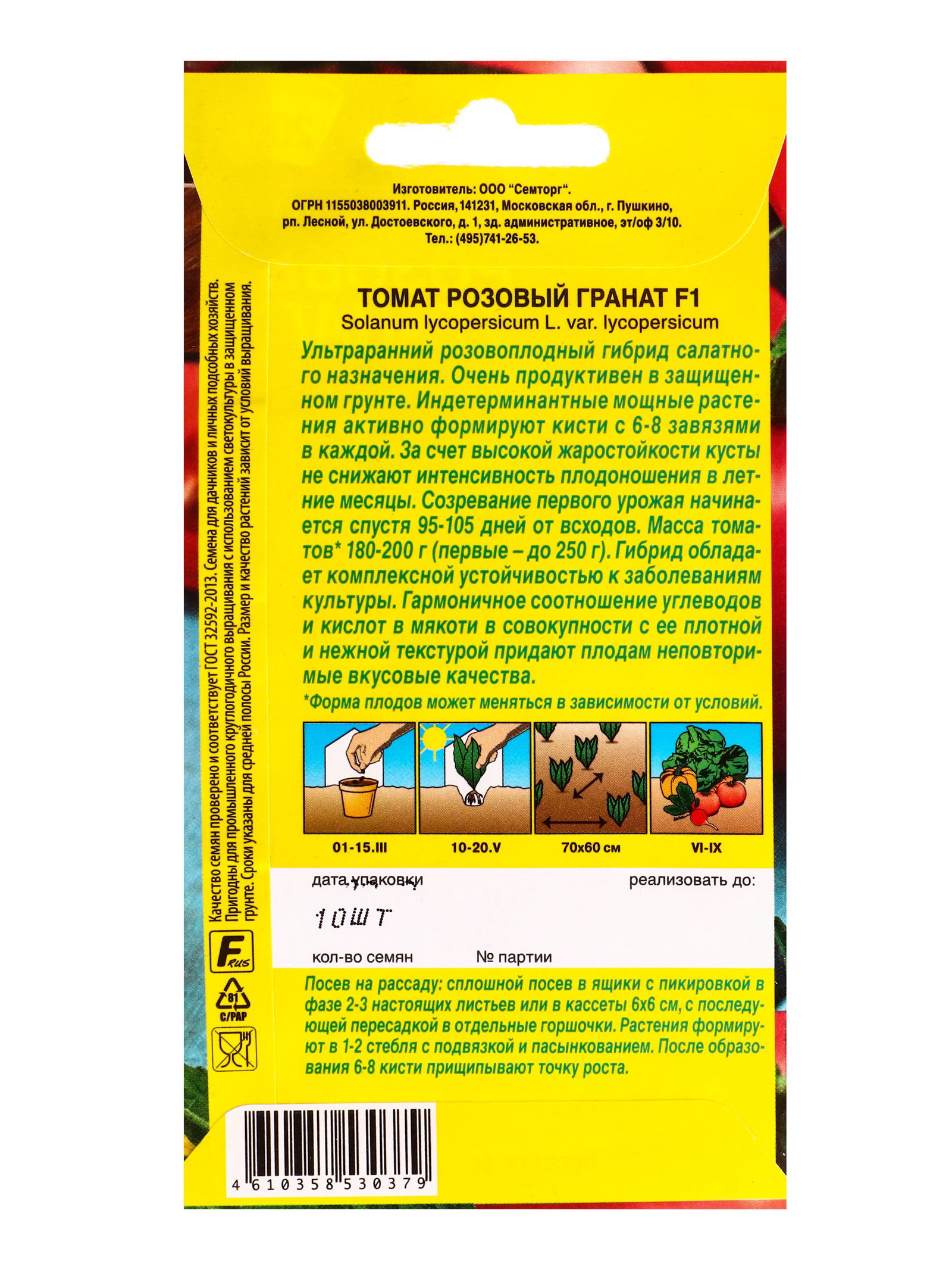 Семена Томат Розовый гранат F1 Семторг, Ц/П СТ,10 шт., Агрофирма АЭЛИТА, Россия