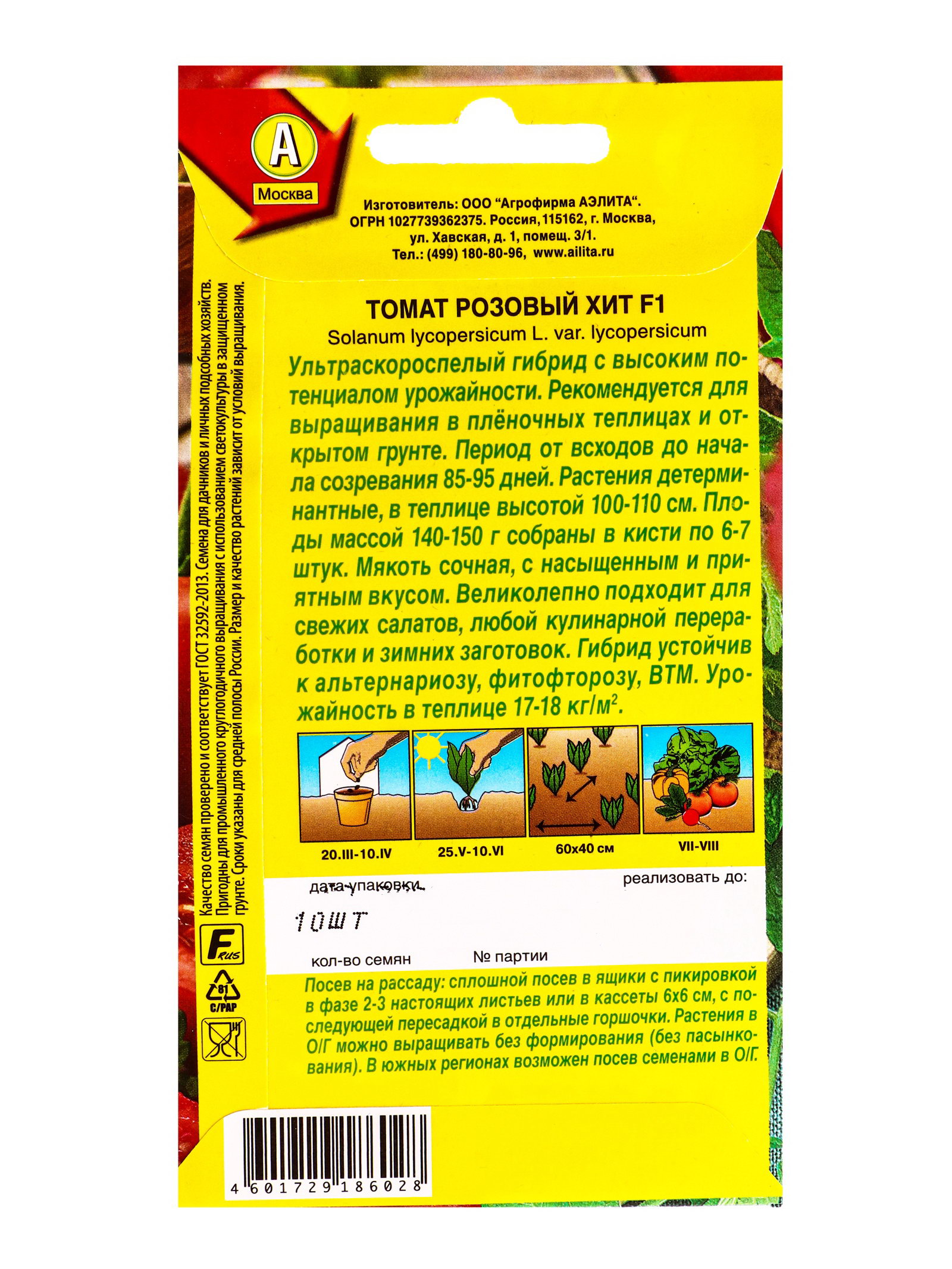 Семена Томат Розовый хит F1, Ц/П,10 шт., Агрофирма АЭЛИТА, Россия