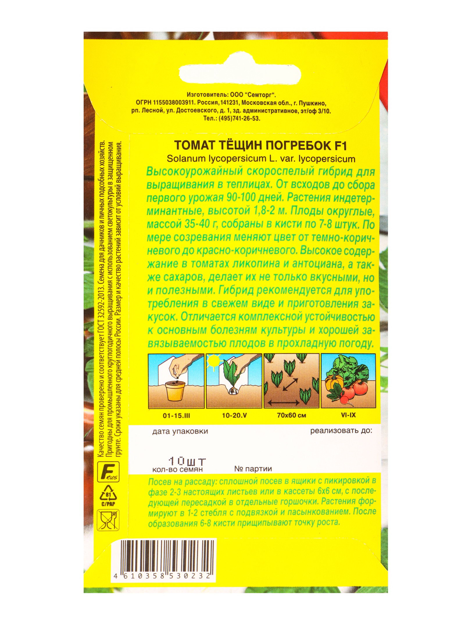 Семена Томат Тёщин погребок F1 Семторг, Ц/П СТ,10 шт., Агрофирма АЭЛИТА, Россия