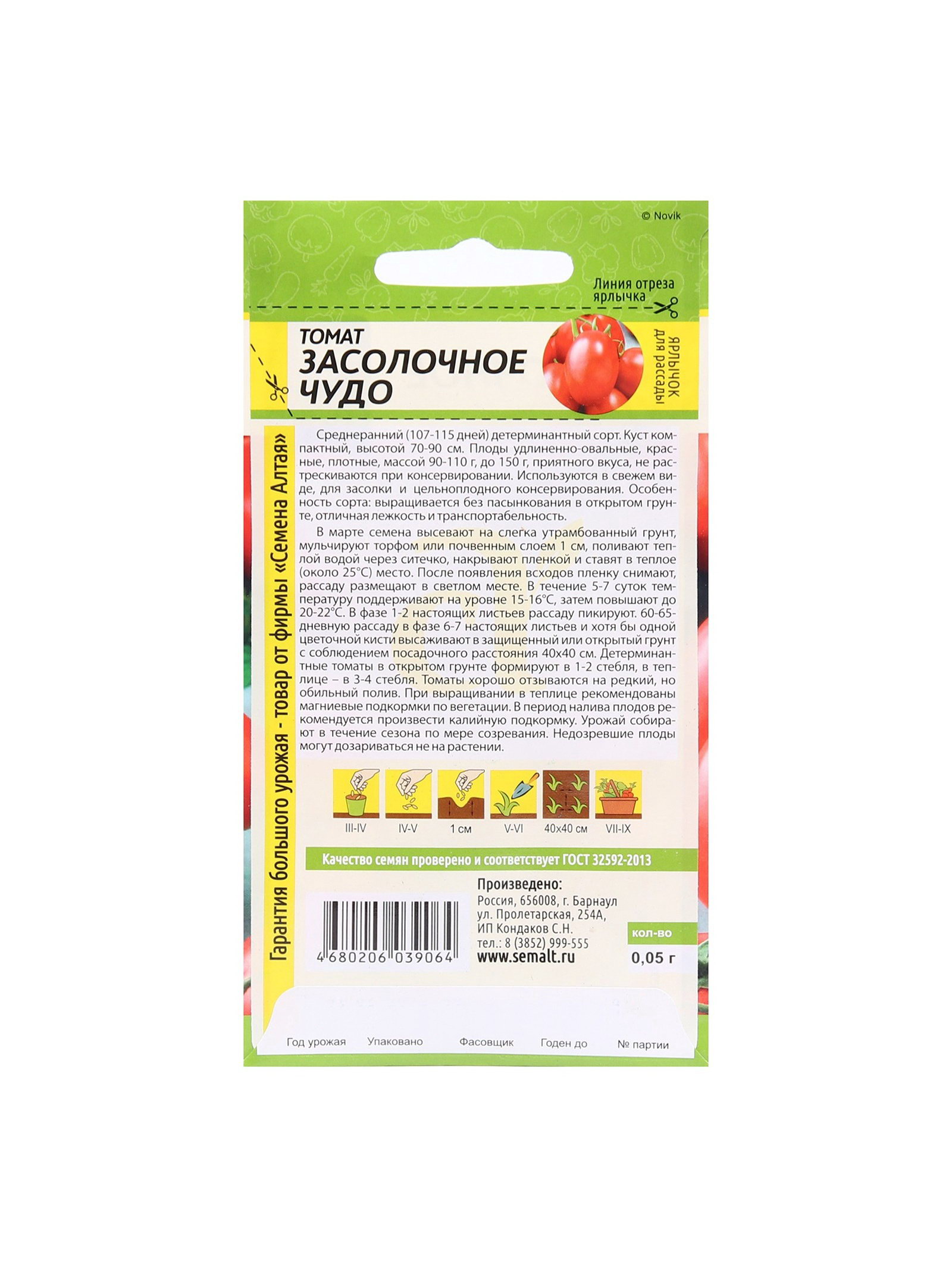 Набор семян Томат "Засолочное Чудо", среднеранний, цп, детерминантный, 5 шт., 9x17x1 см., Мой выбор, Россия