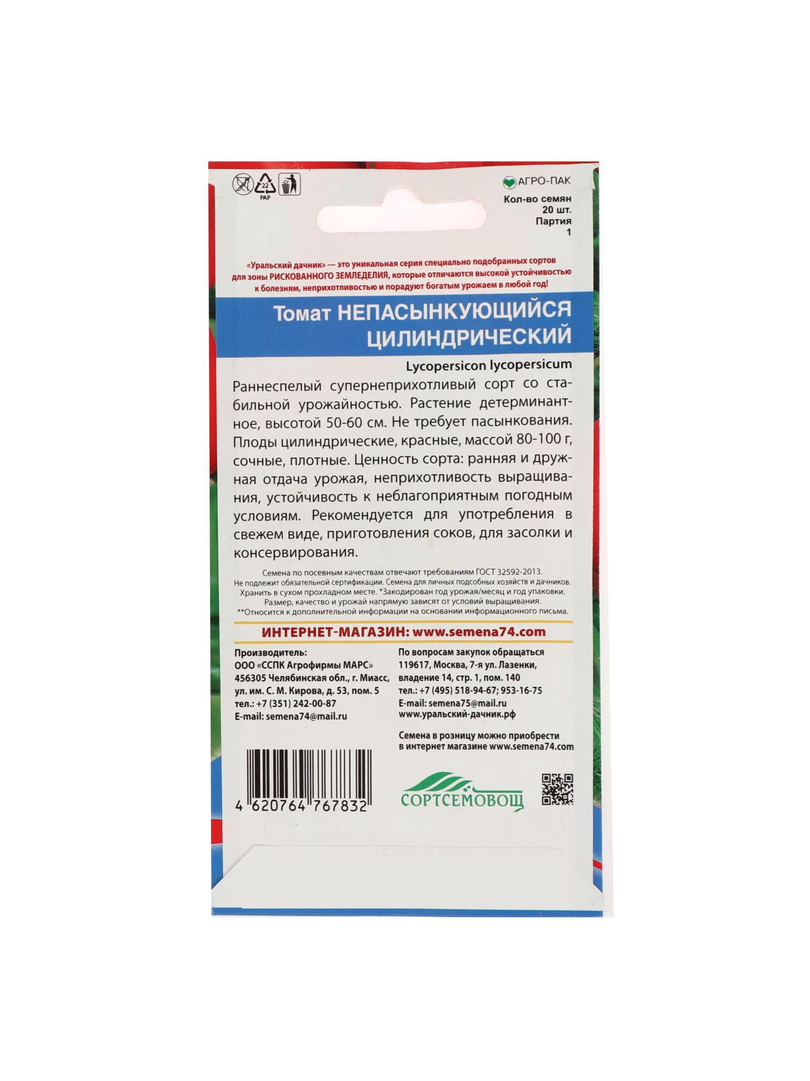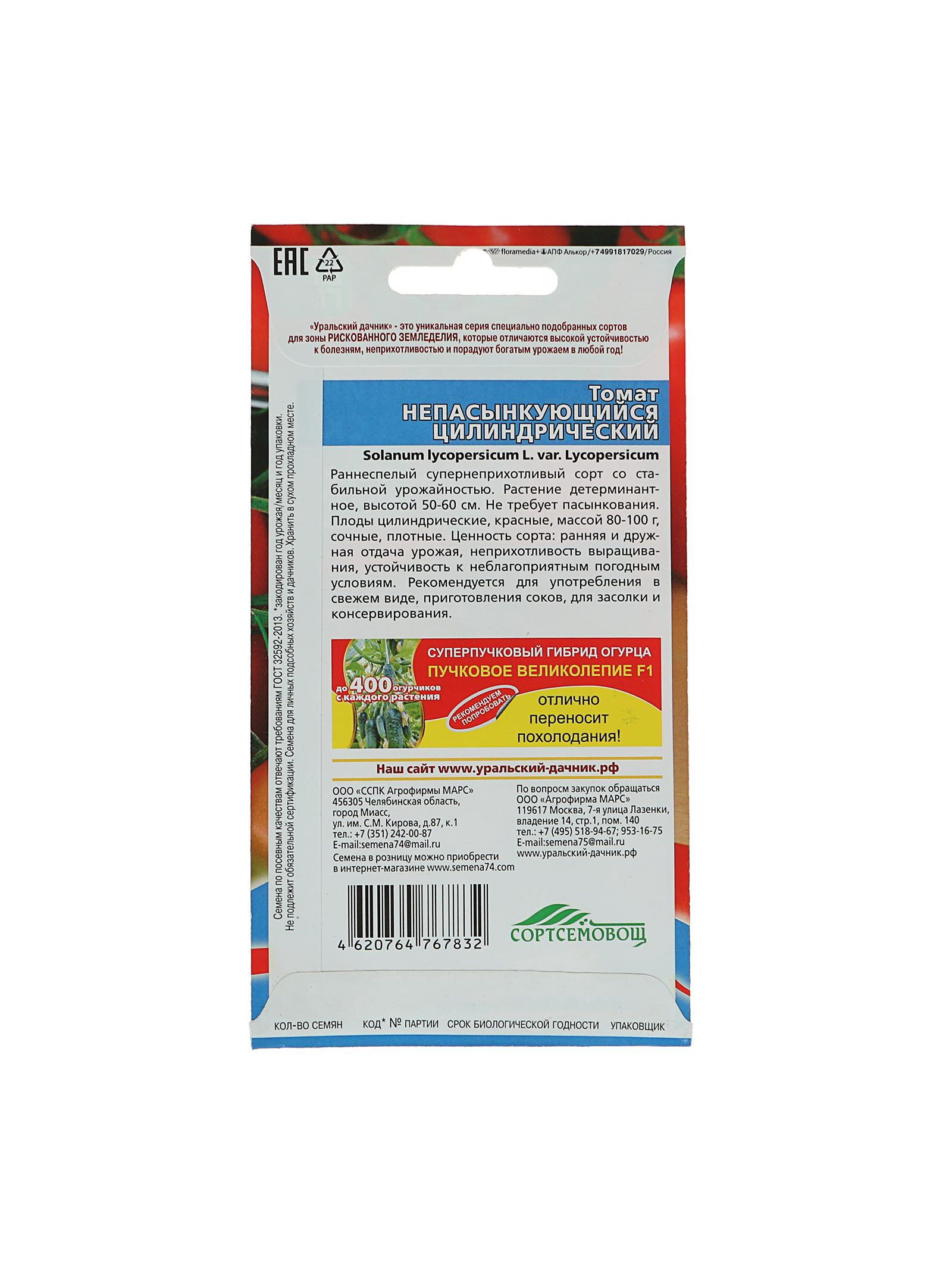 Набор семян Томат "Непасынкующийся Цилиндрический" низкорослый, 5 шт., 9x17x1 см., Мой выбор, Россия