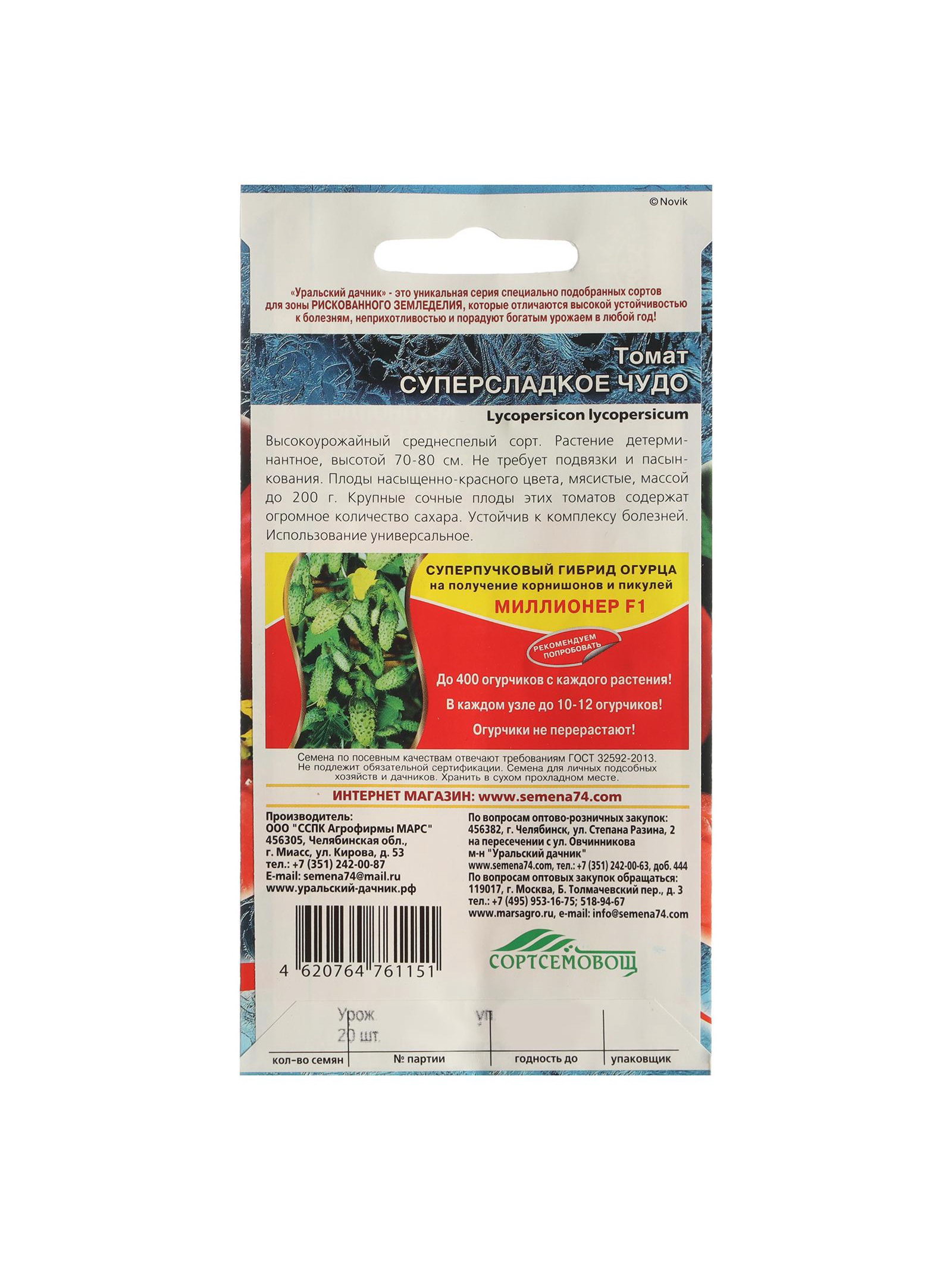 Набор семян Томат "Сладкое Чудо" среднеспел, не пасынкуется, 20 шт, красный, 5 шт., 9x17x1 см., Мой выбор, Россия