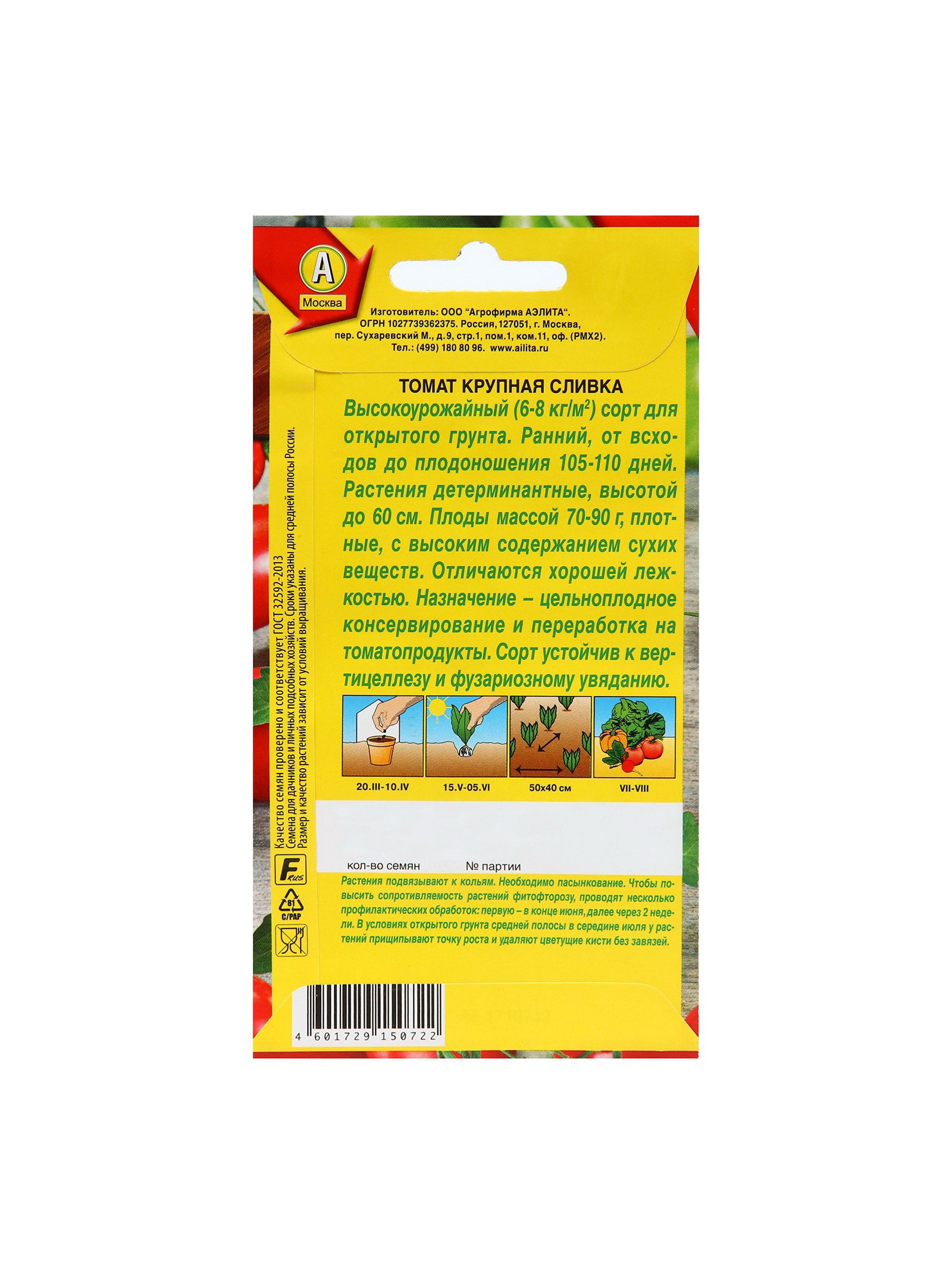 Набор семян Томат Крупная сливка, детерминантный, 5 шт., 9x17x1 см., Мой выбор, Россия