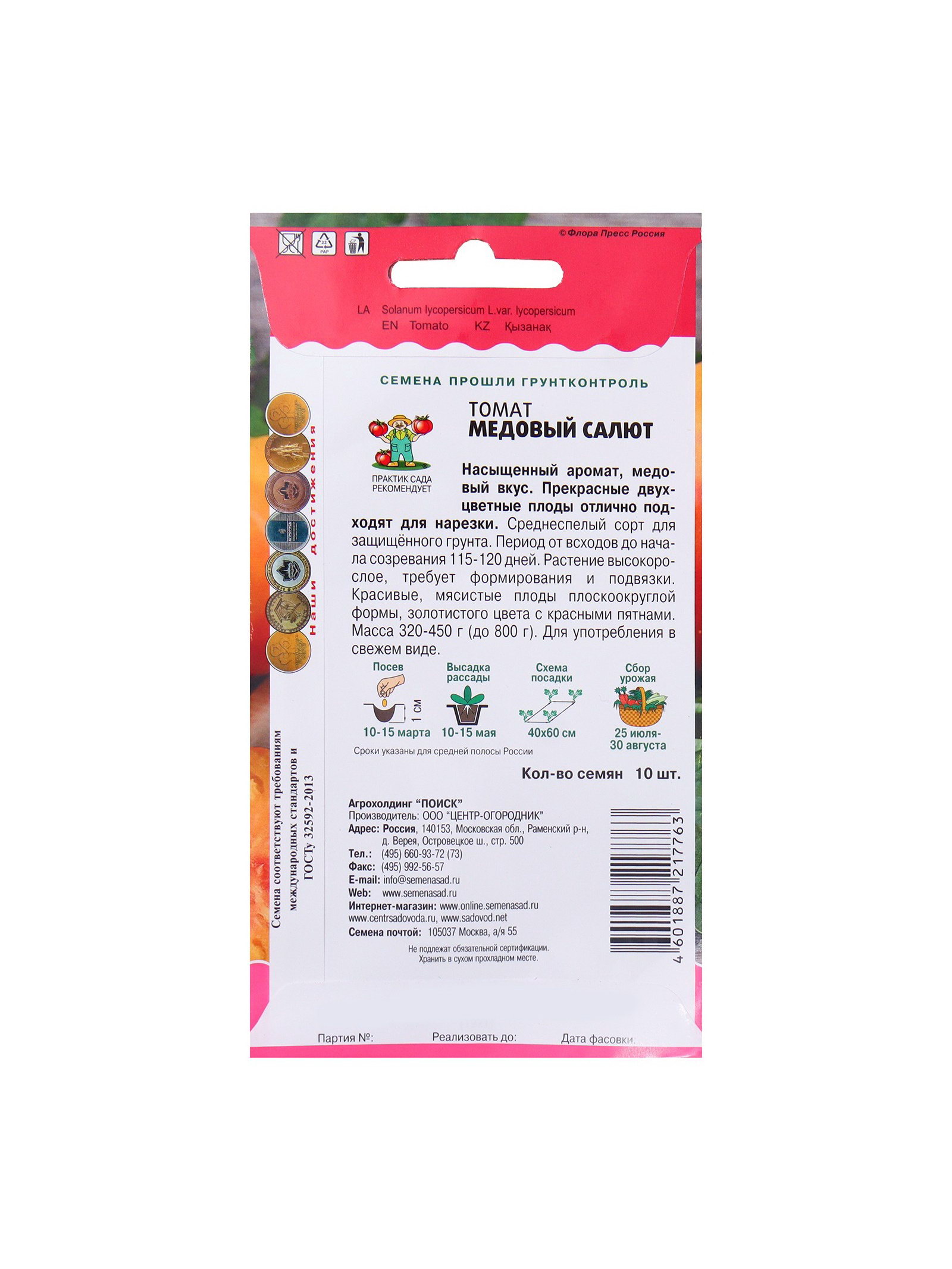 Набор семян Томат "Медовый салют",индетерминантный,высокорослый, 5 шт., 9x17x1 см., Мой выбор, Россия
