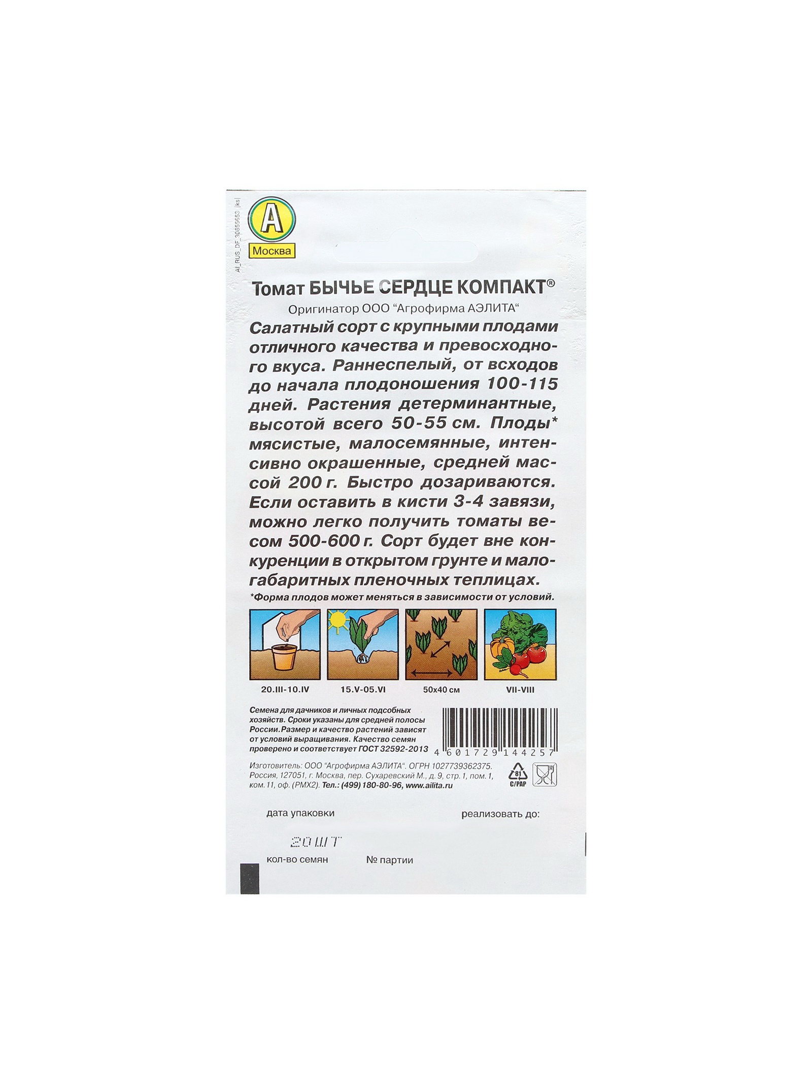 Набор семян Томат "Бычье сердце", компакт, детерминантный, 5 шт., 9x17x1 см., Мой выбор, Россия