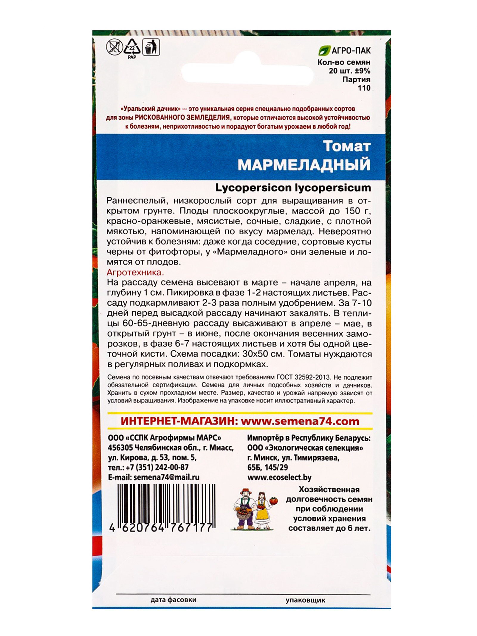 Набор семян Томат "Мармеладный", 5 шт., 9x17x1 см., Мой выбор, Россия
