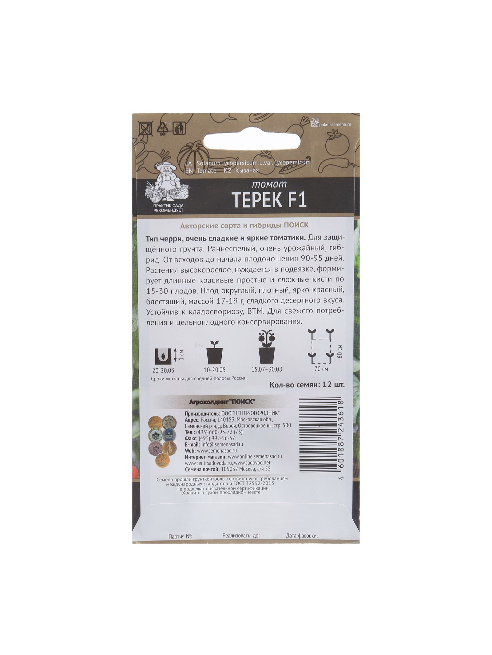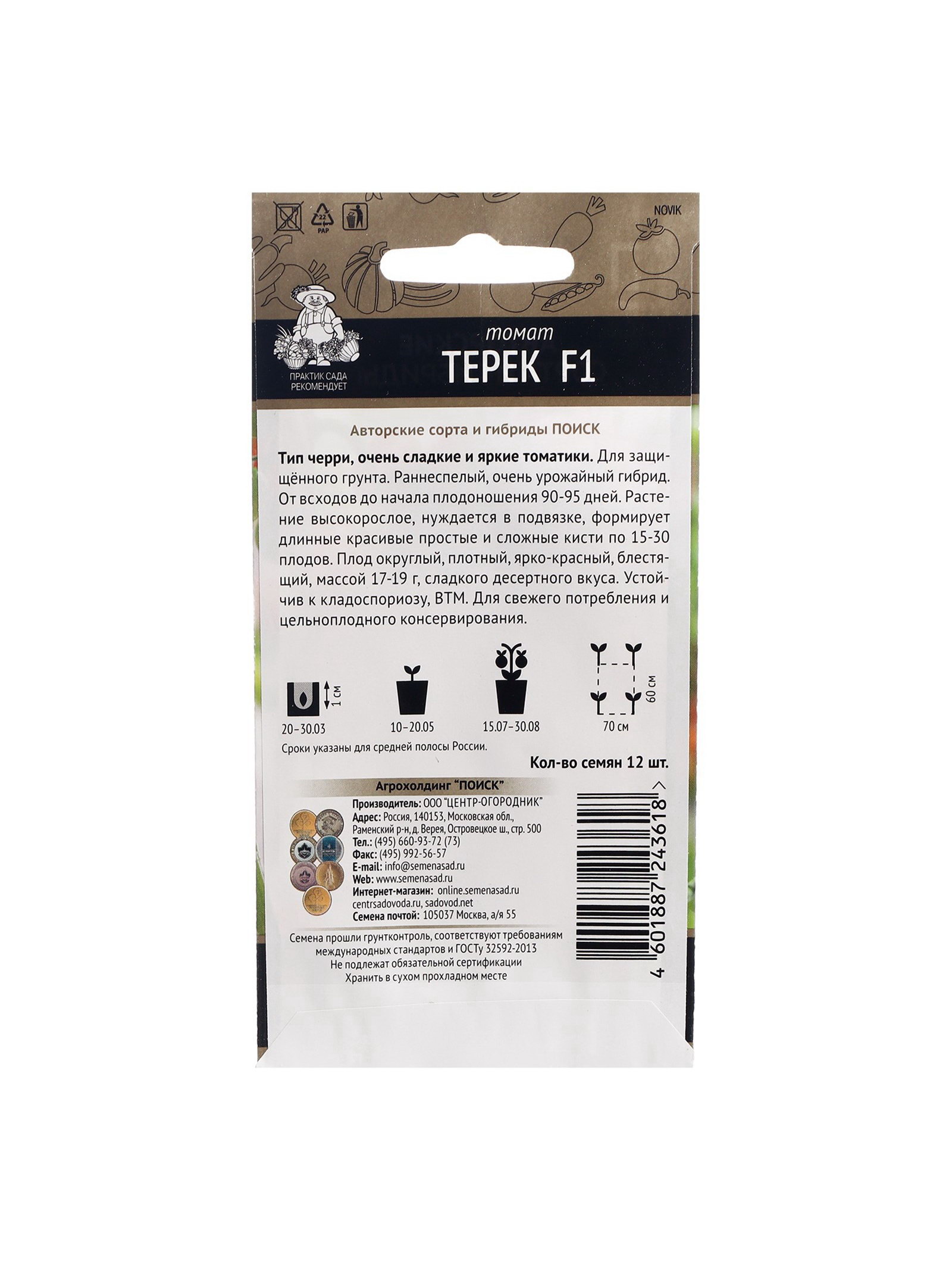 Набор семян Томат "Терек", F1, индетерминантный,высокорослый, 5 шт., 9x17x1 см., Мой выбор, Россия