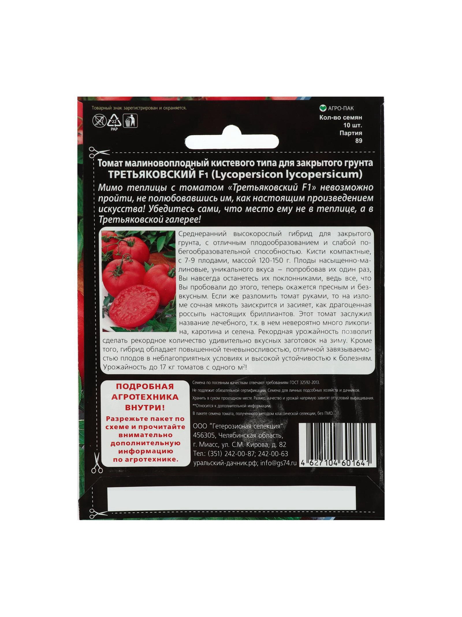 Набор семян Томат "Третьяковский" F1 среднеплодный, среднеранний,высокорослый, 3 шт., 9x17x1 см., Мой выбор, Россия