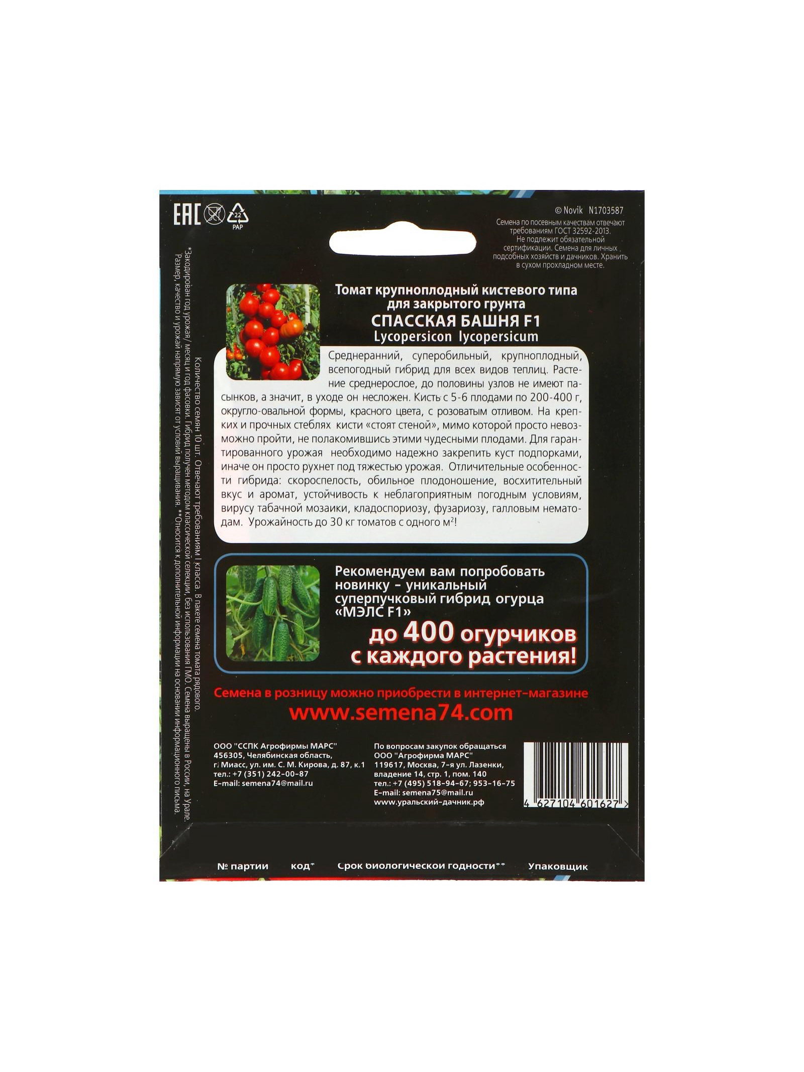 Набор семян Томат "Спасская Башня" F1 крупноплодный, среднеранний, 3 шт., 9x17x1 см., Мой выбор, Россия
