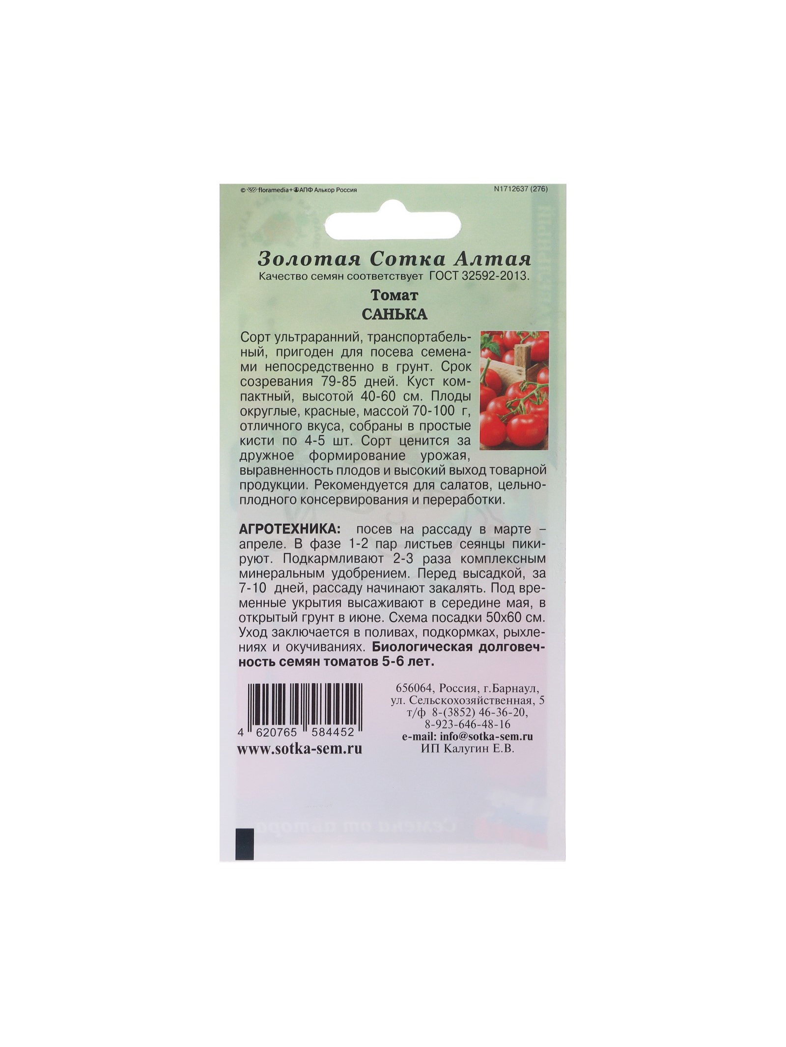 Набор семян Томат "Санька", ультраранний, детерминантный,низкорослый, 5 шт., 9x17x1 см., Мой выбор, Россия