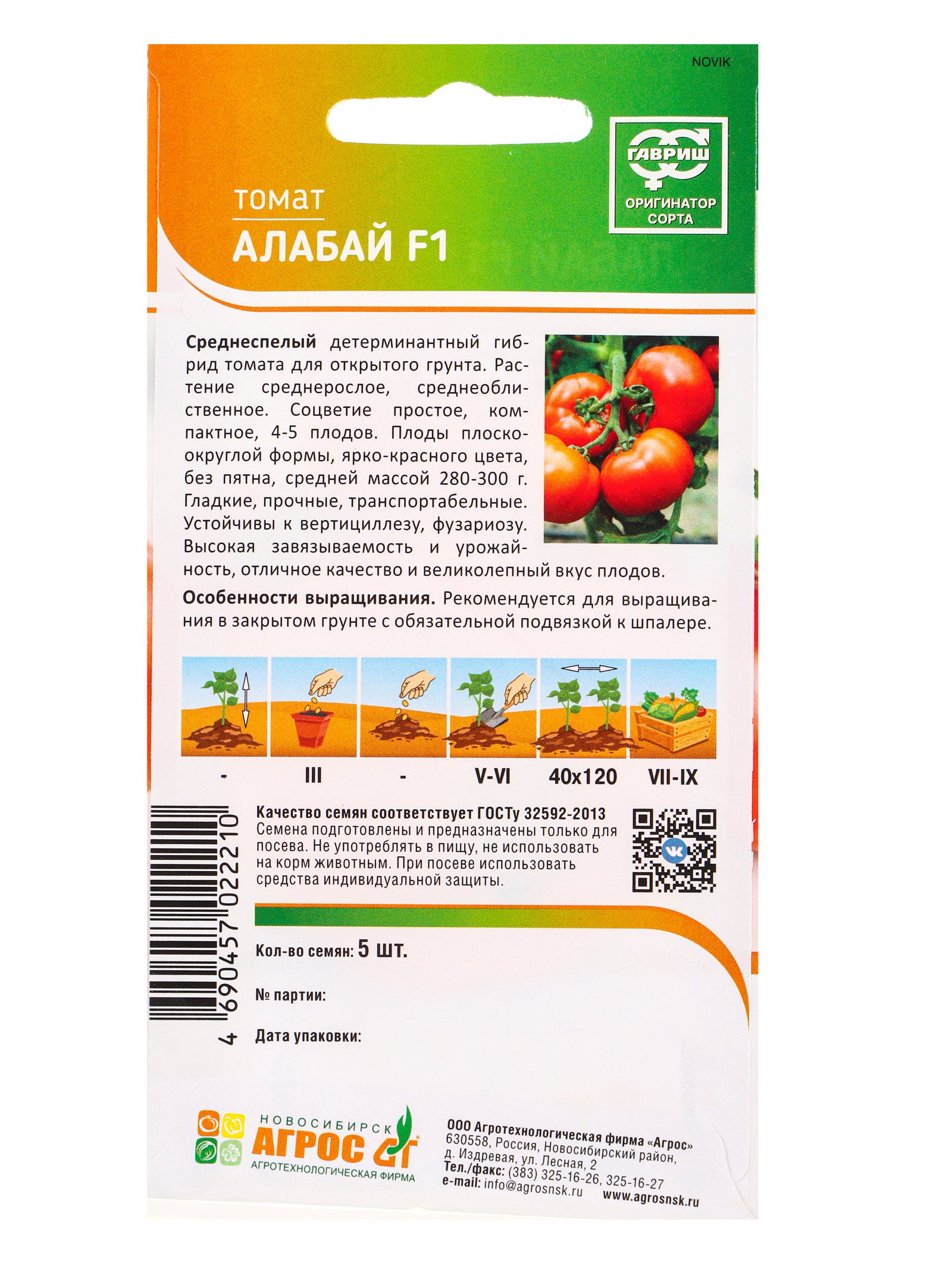 Размер упаковки: 8 x 0.1 x 15 см. tnved: 12099190000000 Температурное ограничение: Нет Вес: Суперкрупноплодные (свыше 200 г) Нуждаются в пасынковании: Нет Тип роста: Детерминантный (среднерослый) Цвет: Красный Применение: Универсальное Место выращивания: Открытый грунт Форма томатов: Круглые Сорт или гибрид: Гибрид F1 Посев на рассаду: Март Сроки созревания: Средний Семена томата "Алабай" F1, 5 шт. – это гибрид первого поколения со средним сроком созревания. Растение сочетает в себе крупный размер плодов и неприхотливый характер детерминантного куста.