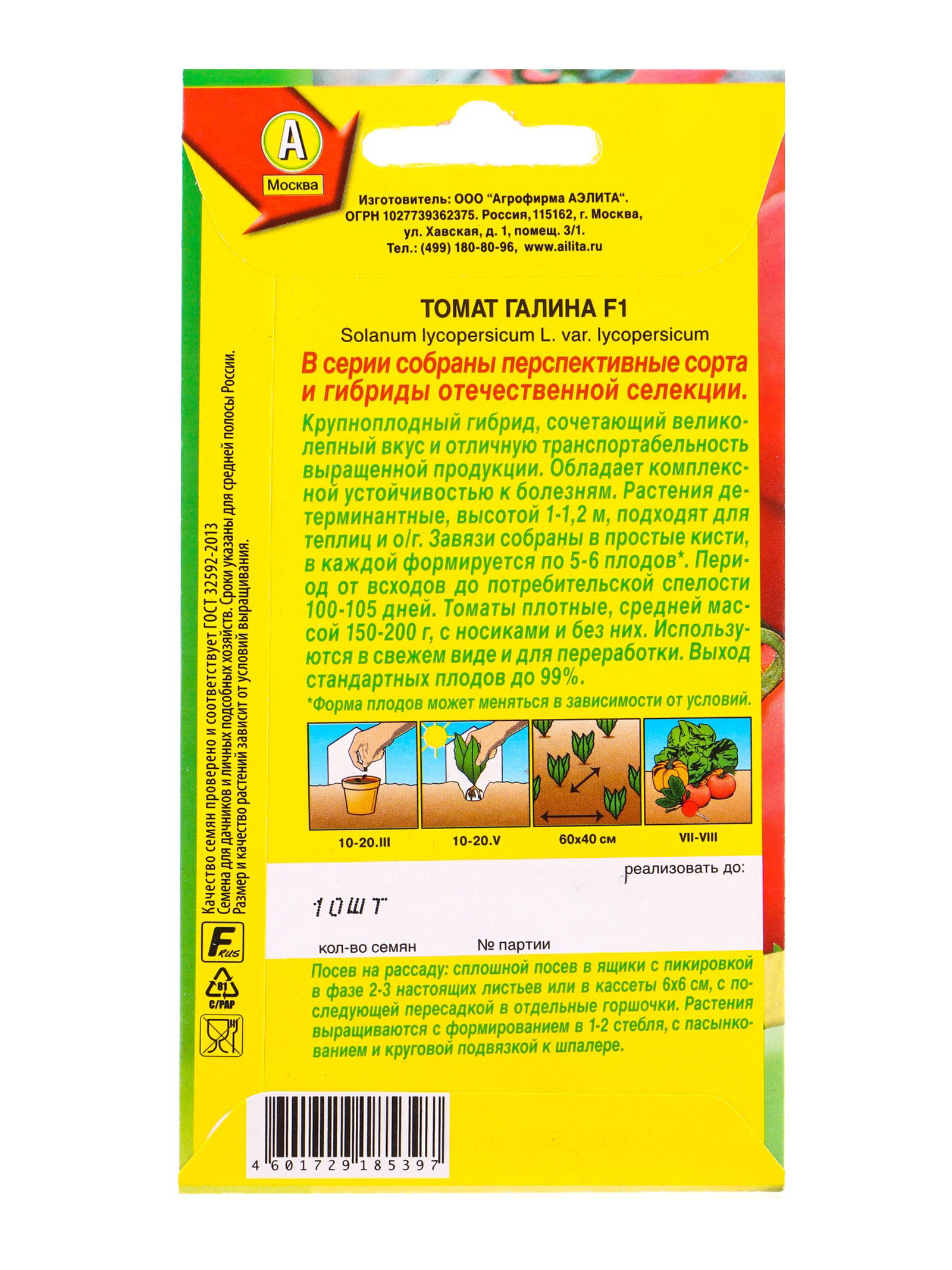 Семена Томат Галина F1 Отечественная С.екция, Ц/П,10 шт., Агрофирма АЭЛИТА, Россия
