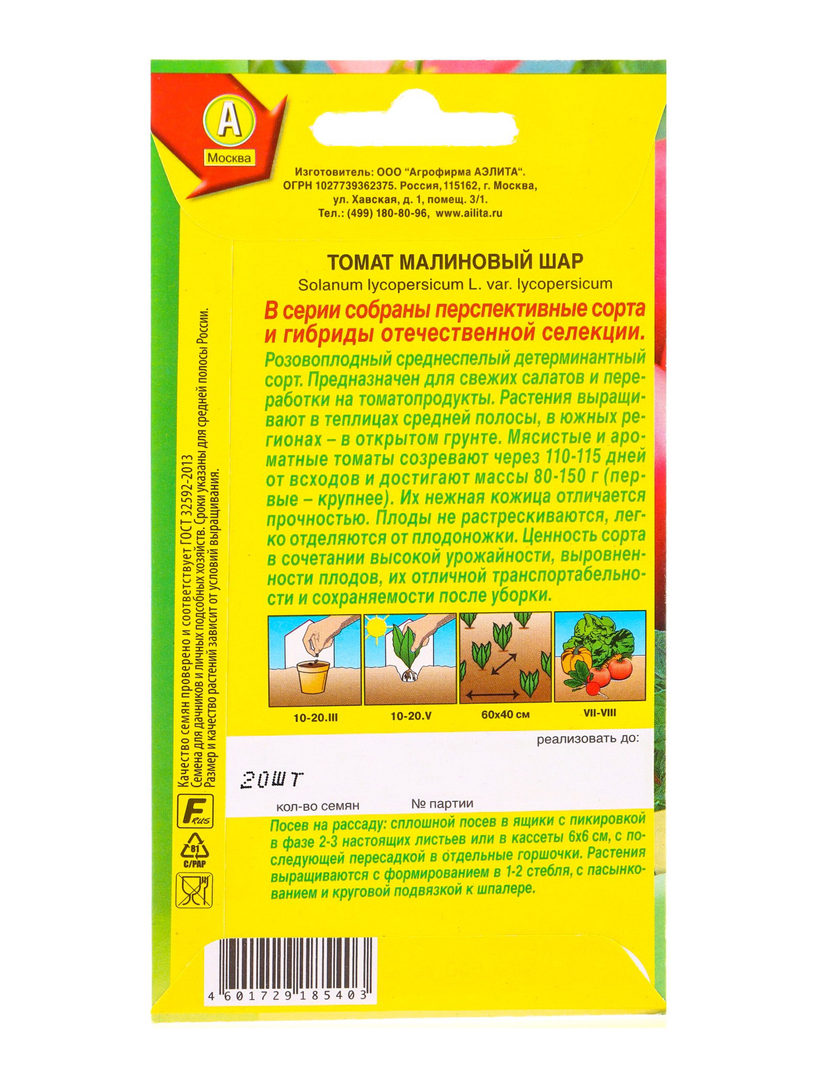 Семена Томат Малиновый шар Отечественная С.екция, Ц/П,20 шт., Агрофирма АЭЛИТА, Россия