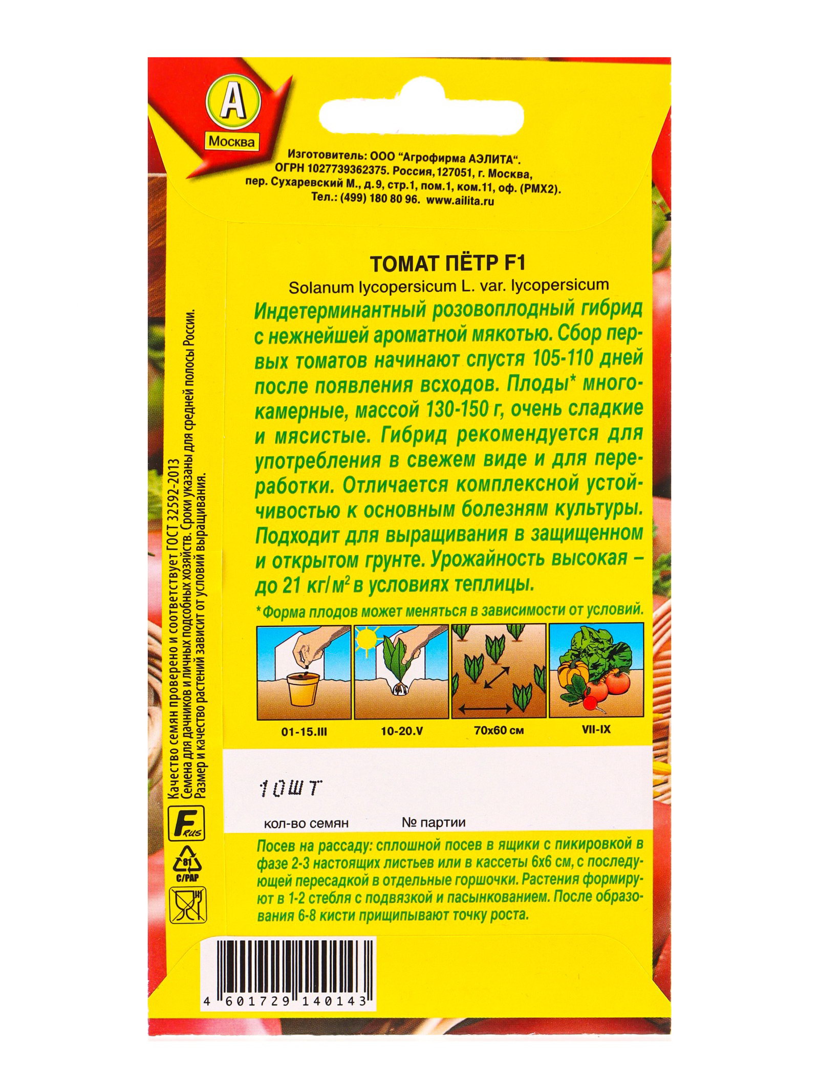 Семена Томат Петр F1 Р, Ц/П,10 шт., Агрофирма АЭЛИТА, Россия