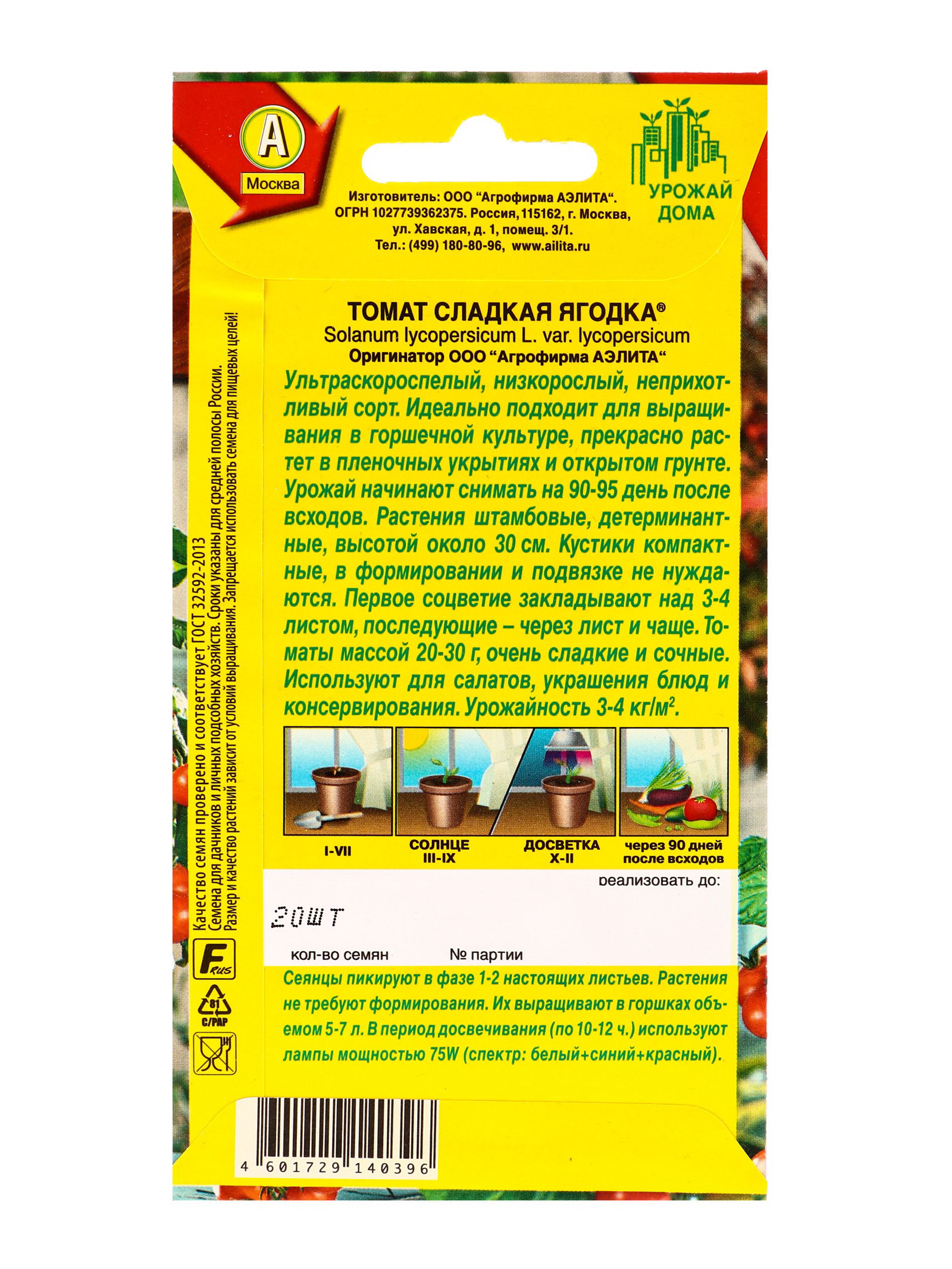 Семена Томат Сладкая ягодка Р Урожай дома, Ц/П,20 шт., Агрофирма АЭЛИТА, Китай