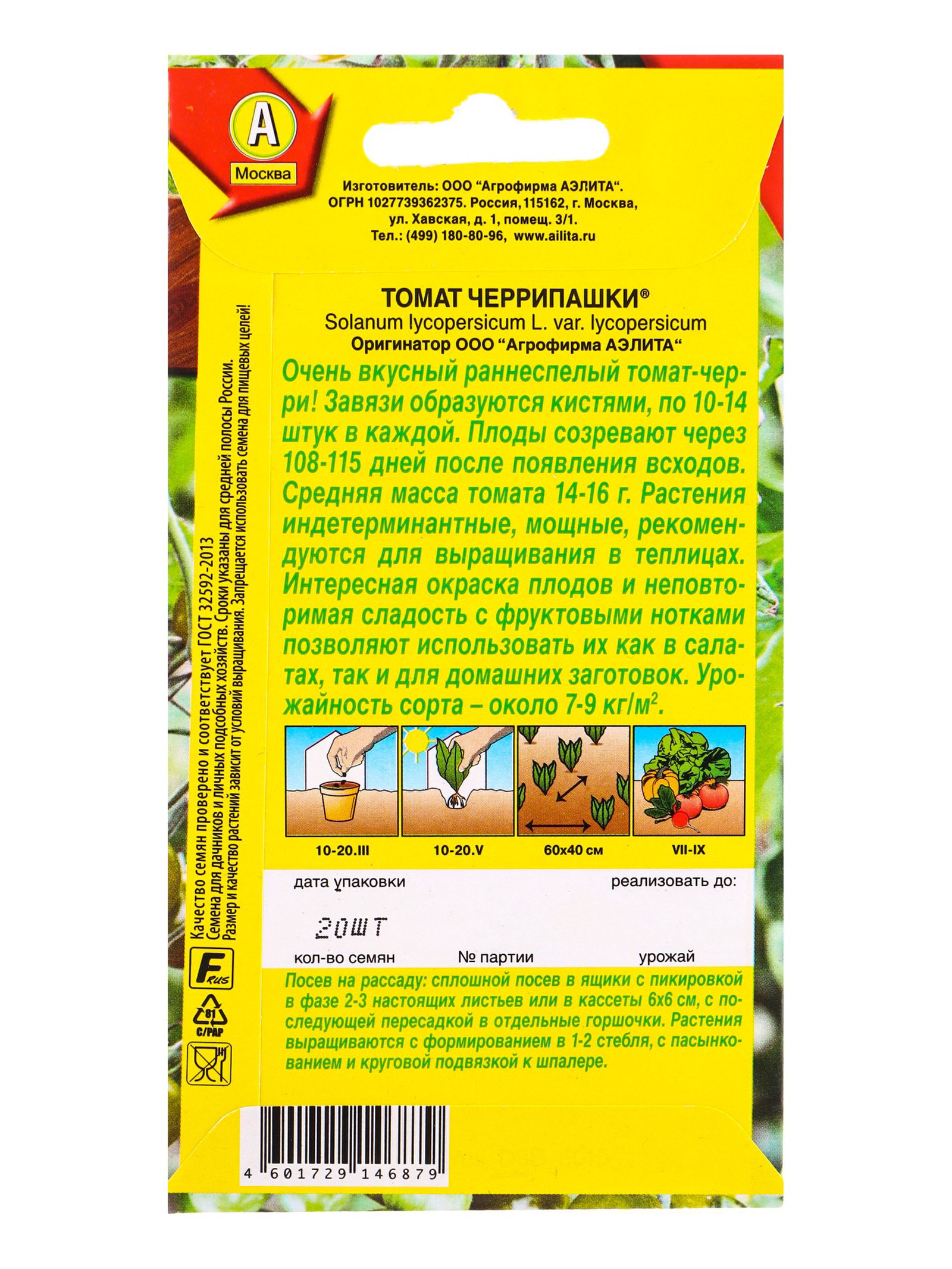 Семена Томат Черрипашки Р, Ц/П,20 шт., Агрофирма АЭЛИТА, Китай