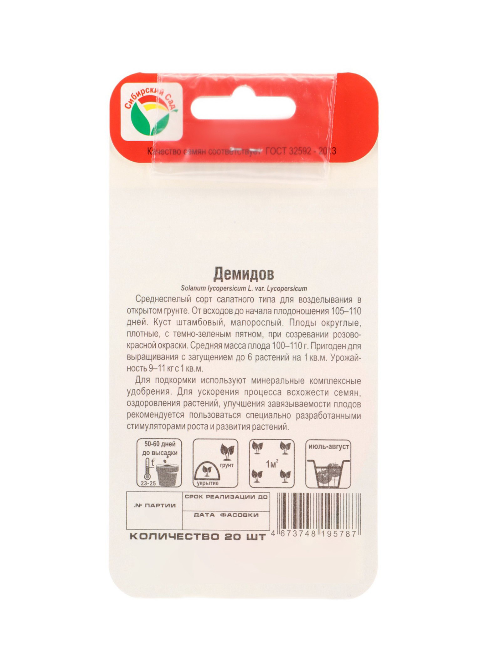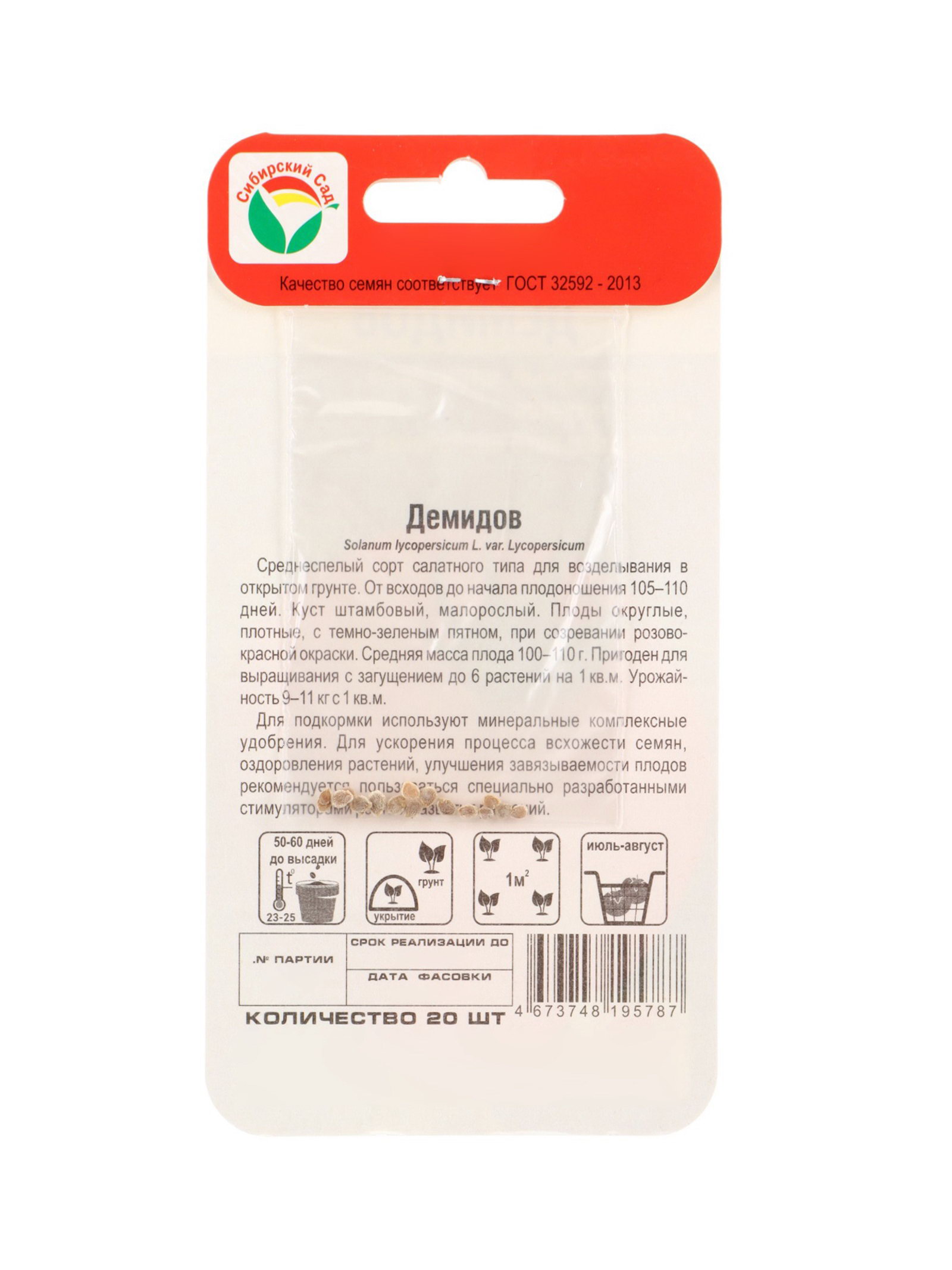 Семена Томат "Демидов", 20 шт., Сибирский сад, Россия