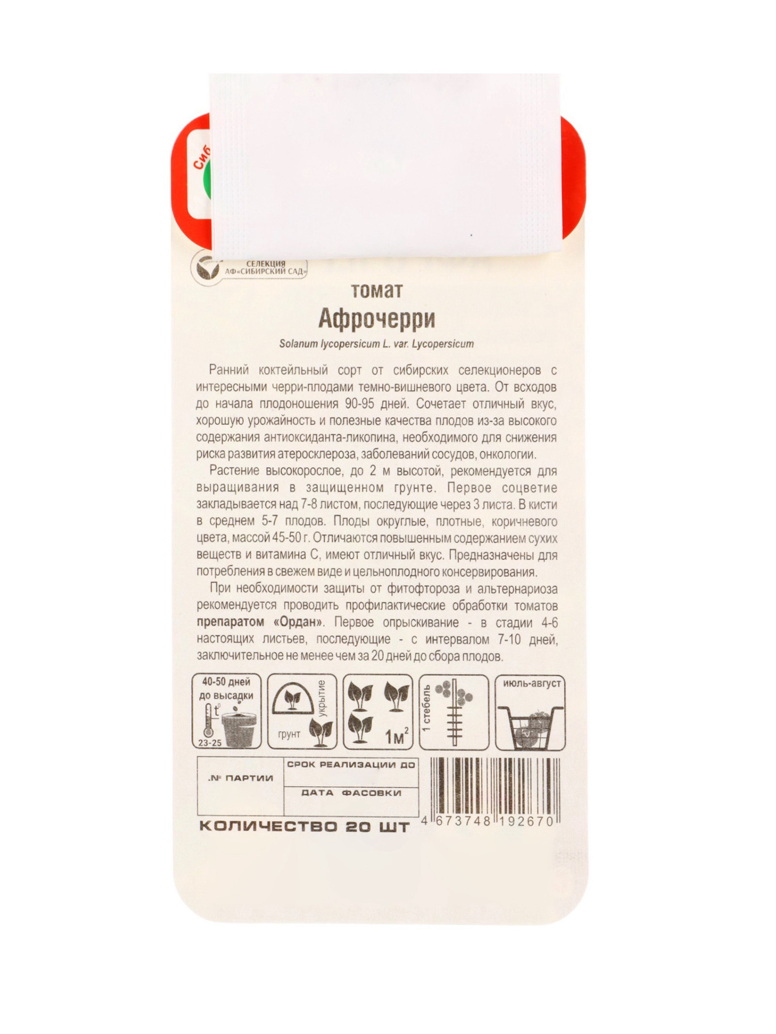 Семена Томат "Афрочерри", 20 шт., Сибирский сад, Россия