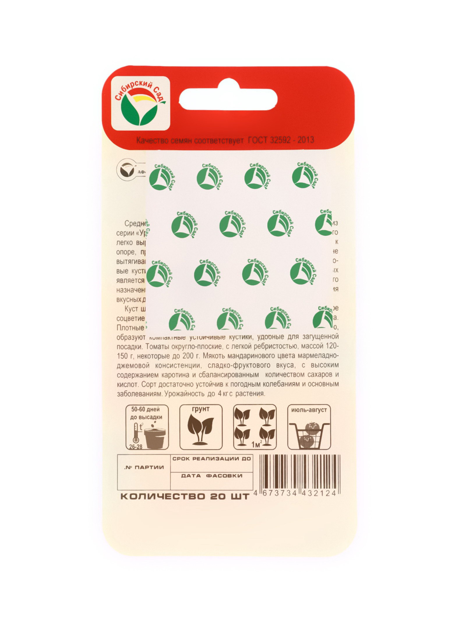 Семена Томат "Апельсиновый джем", 20 шт., Сибирский сад, Россия