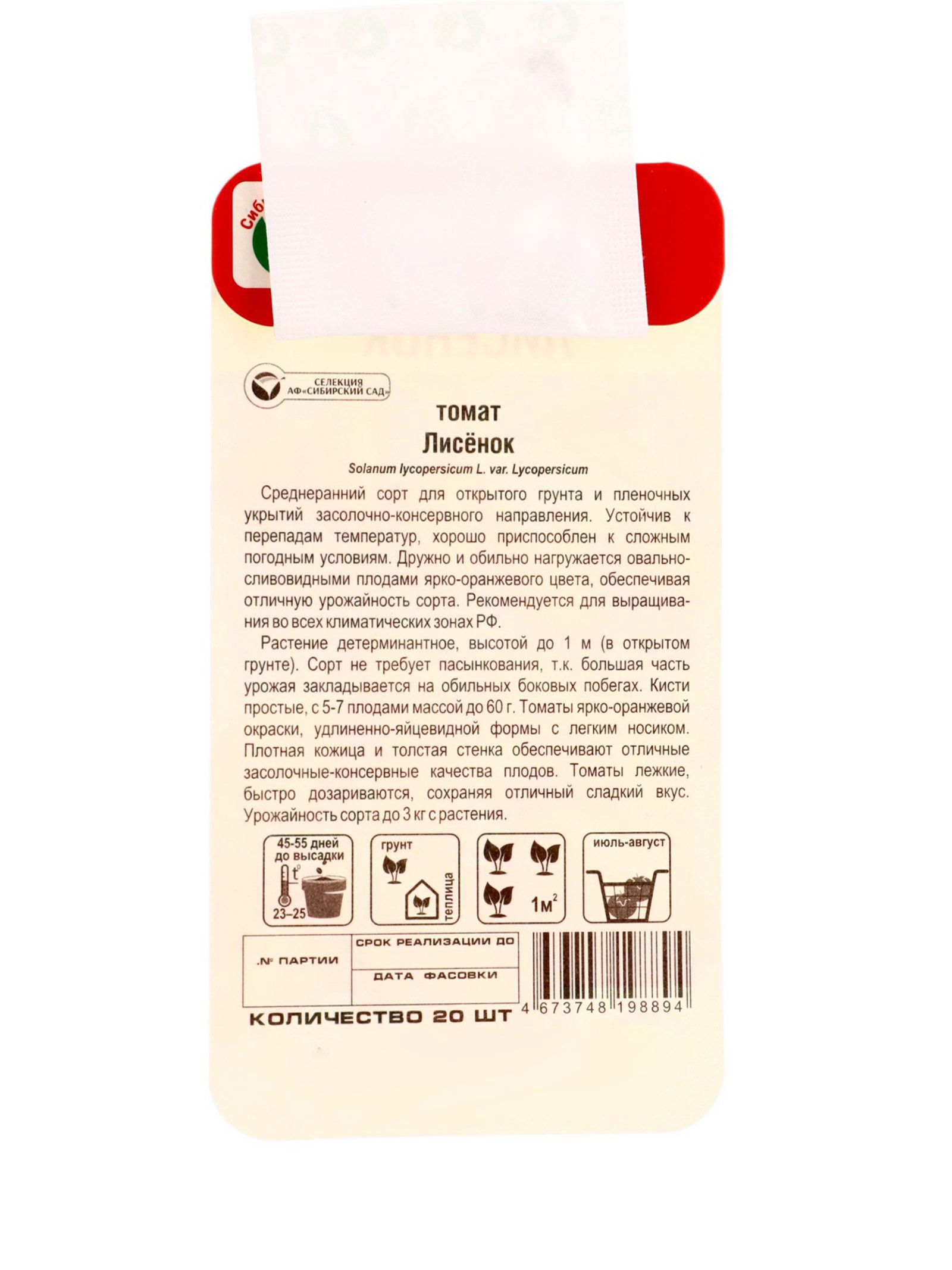 Семена Томат "Лисенок", 20 шт., Сибирский сад, Россия